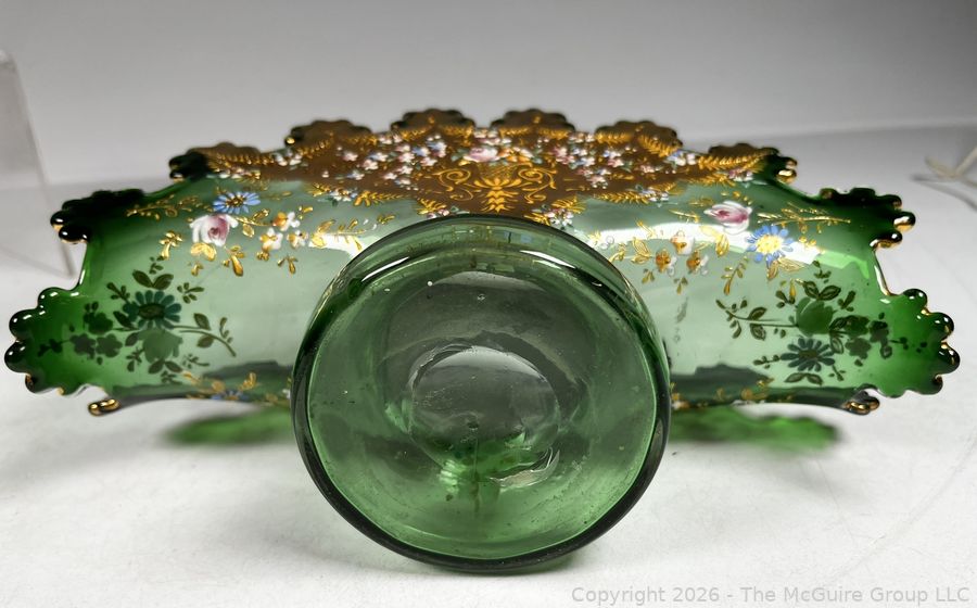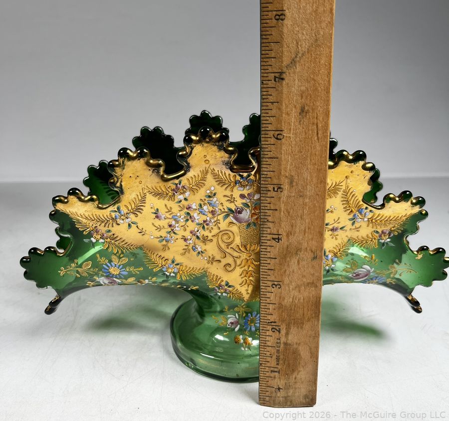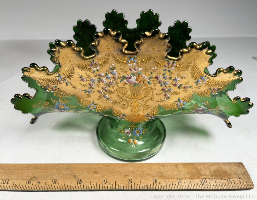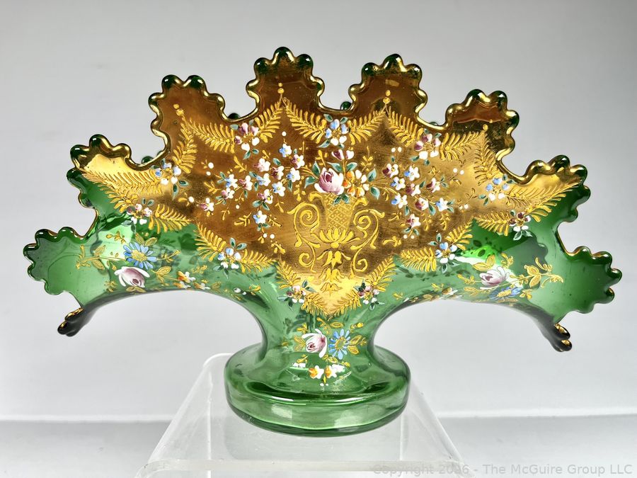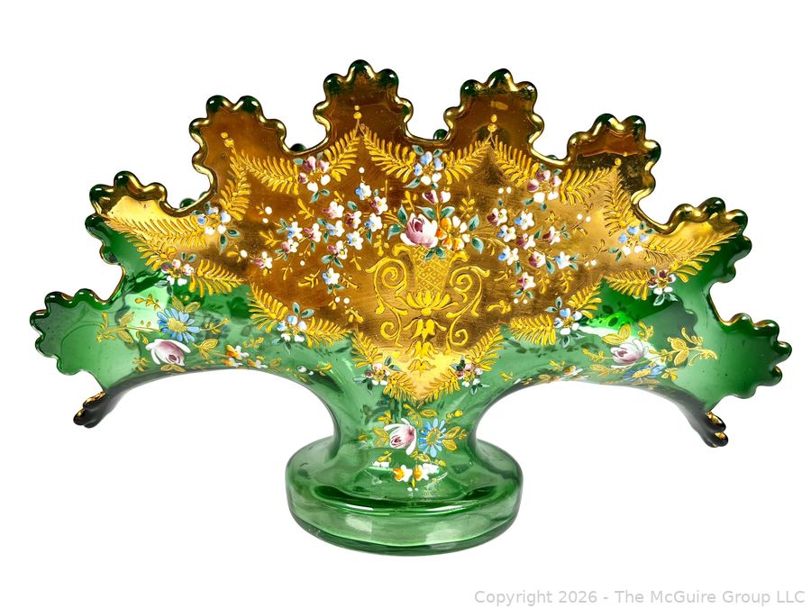 Lot #0168MB: Czech Bohemian Gilt and Green Glass Fan Vase
