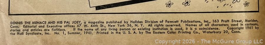 Lot #0074CP: Dennis The Menace And His Pal Joey, No. 1. Hallden Fawcett Publications Inc., 1961. Comic Book