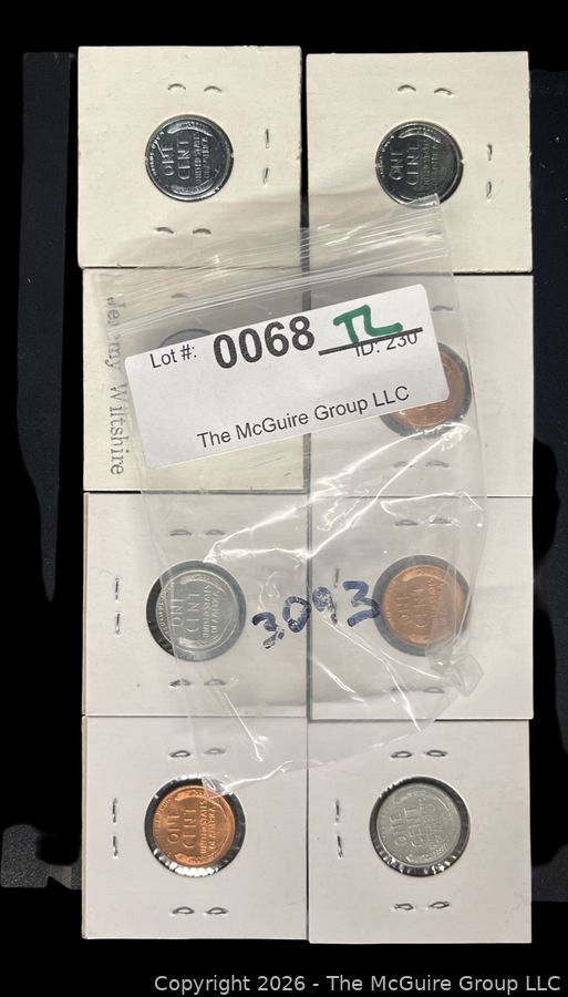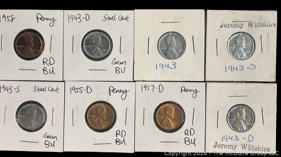Lot #0068TL: Eight (8) US 1 Cent Coins 1943 1955-D 1958 1957-D 1943-D 1943-S 1943-S 1943-D