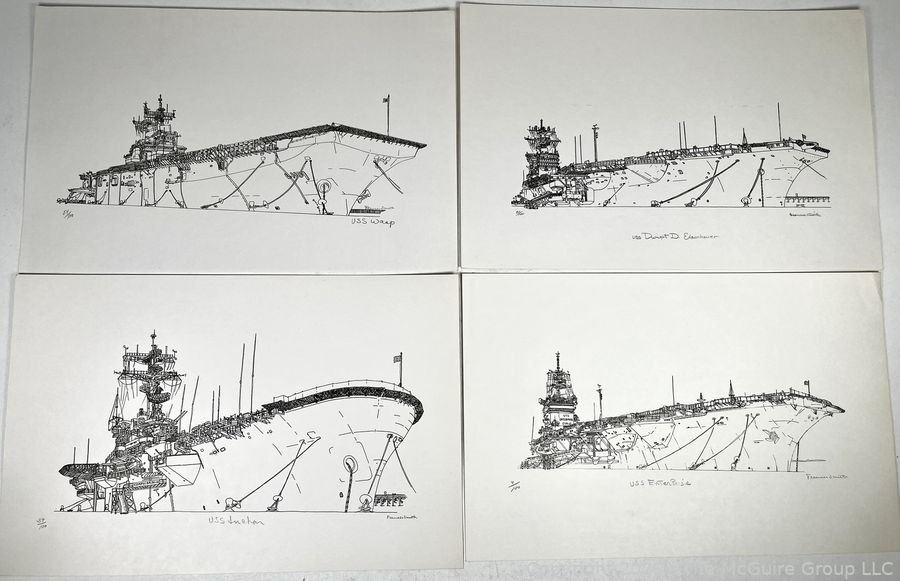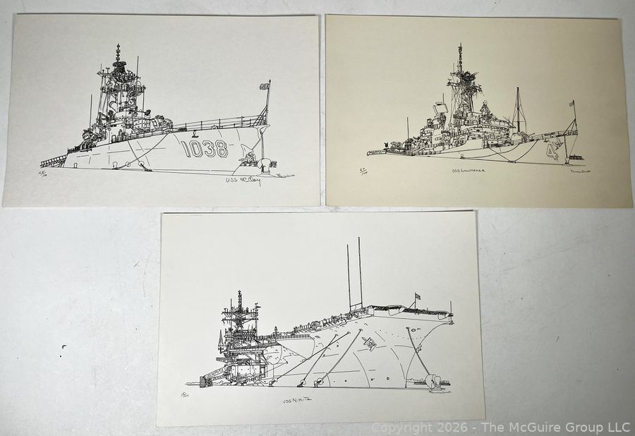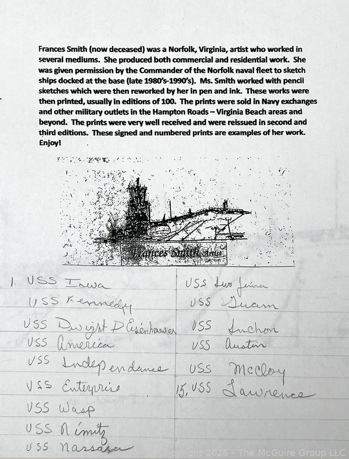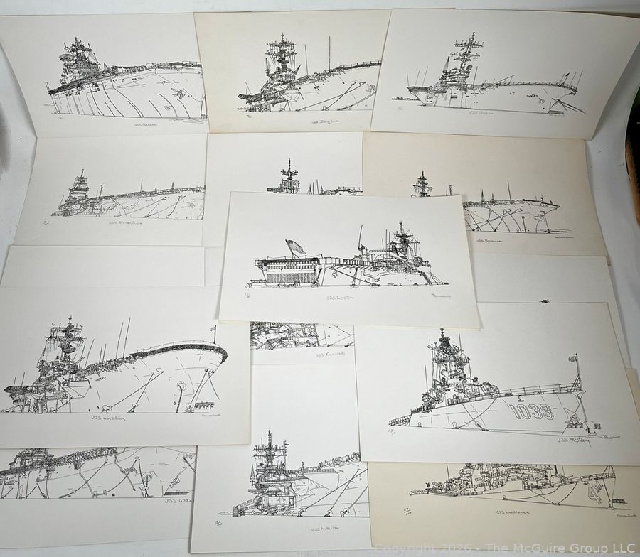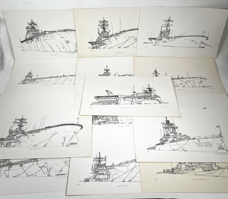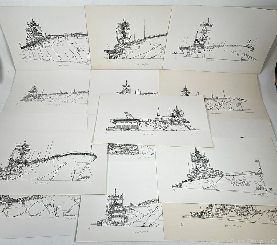Lot #0334CS: Fifteen (15) Naval Ship Art Prints Signed and Numbered in Pencil by Artist Frances Smith. 11" X 17".
