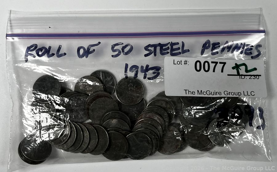 Lot #0077TL: Fifty (50) 1943 Steel Pennies