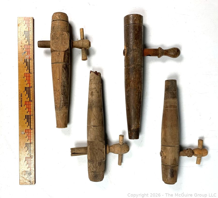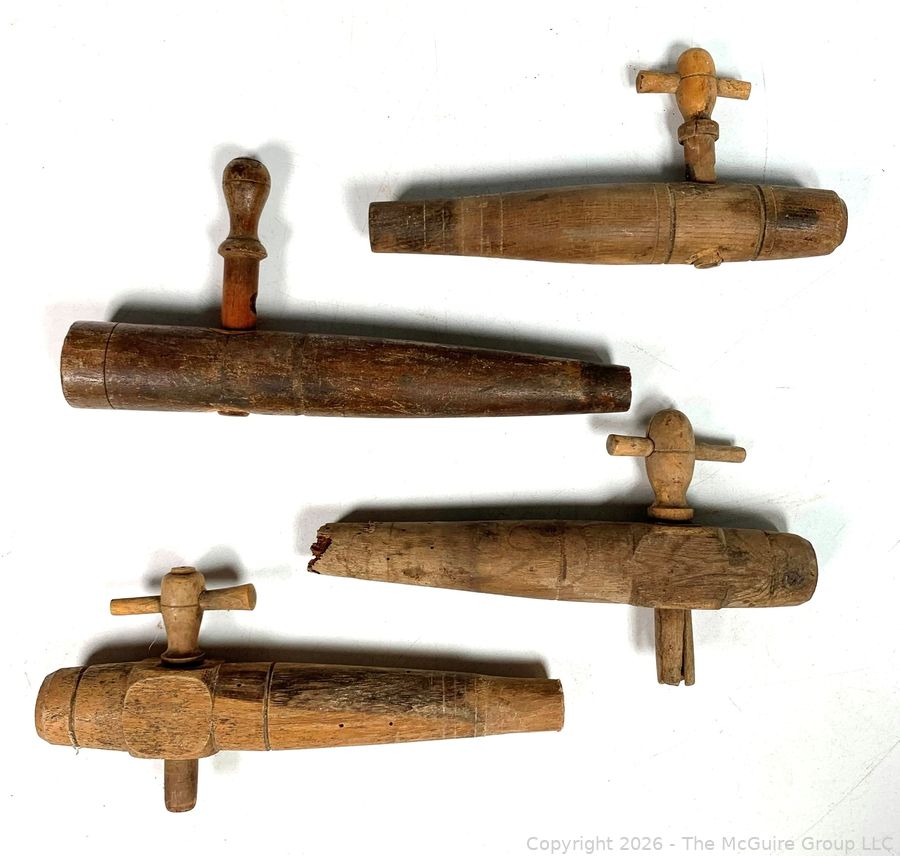 Lot #0115: Four (4) Wood Beer Whiskey Barrel Tap Spigots Spouts
