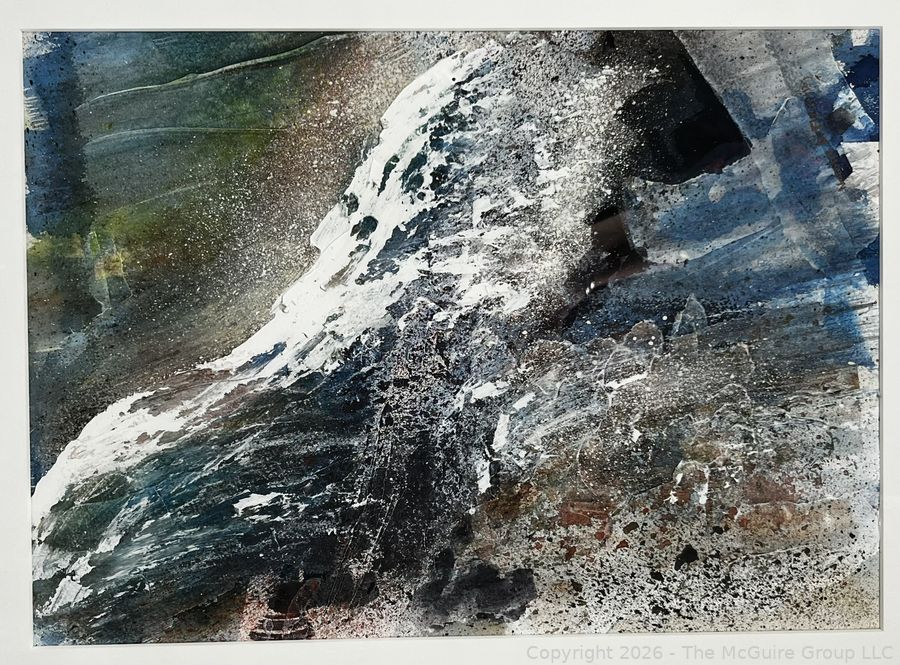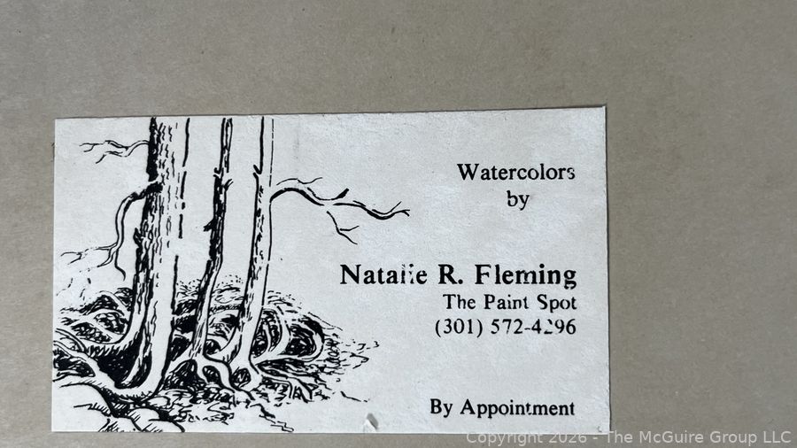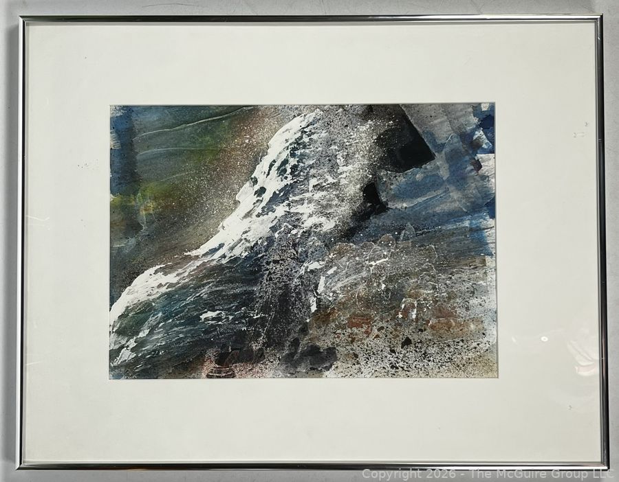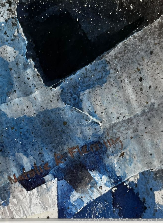 Lot #0353KE: Framed Under Glass Abstract Watercolor Signed By Artist Natalie Fleming. 17" x 22"