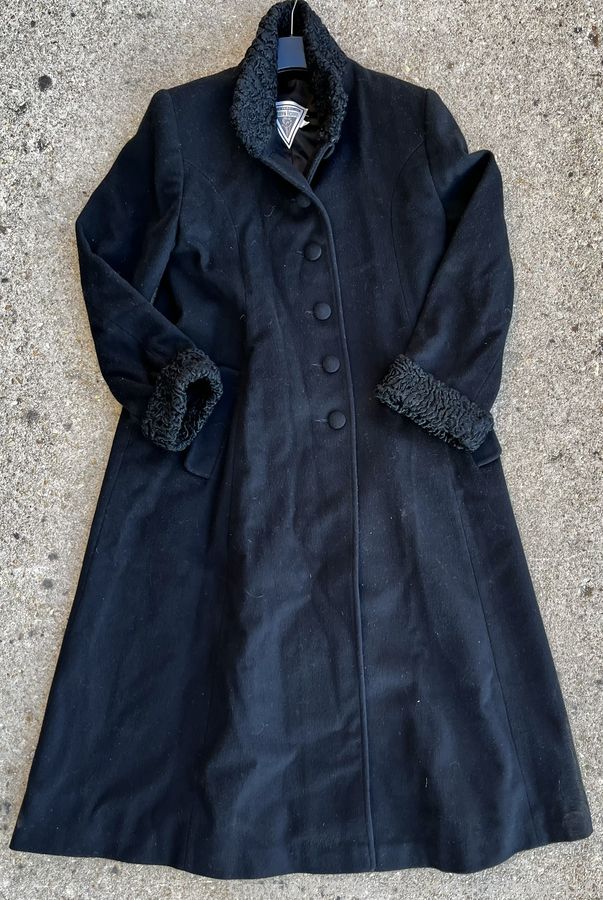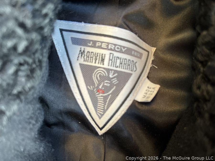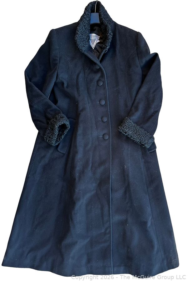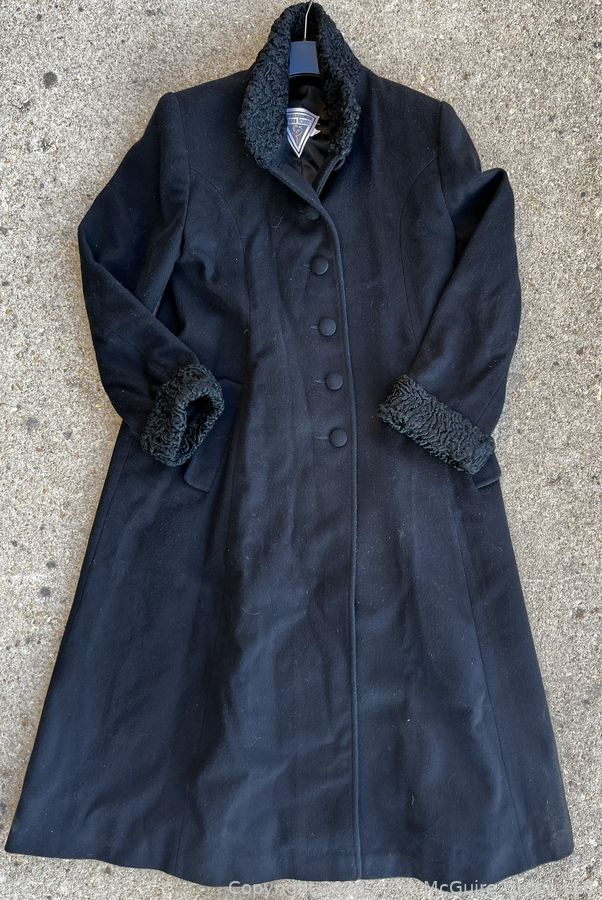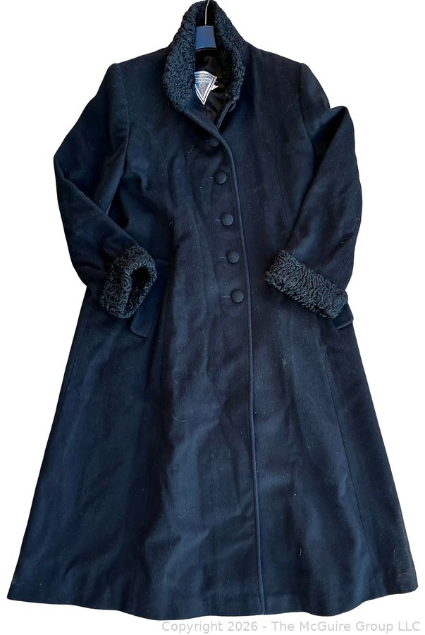 Lot #0043IS: J Percy for Marvin Richards Black Wool Coat with Curly Lamb Fur Trim. Size 6