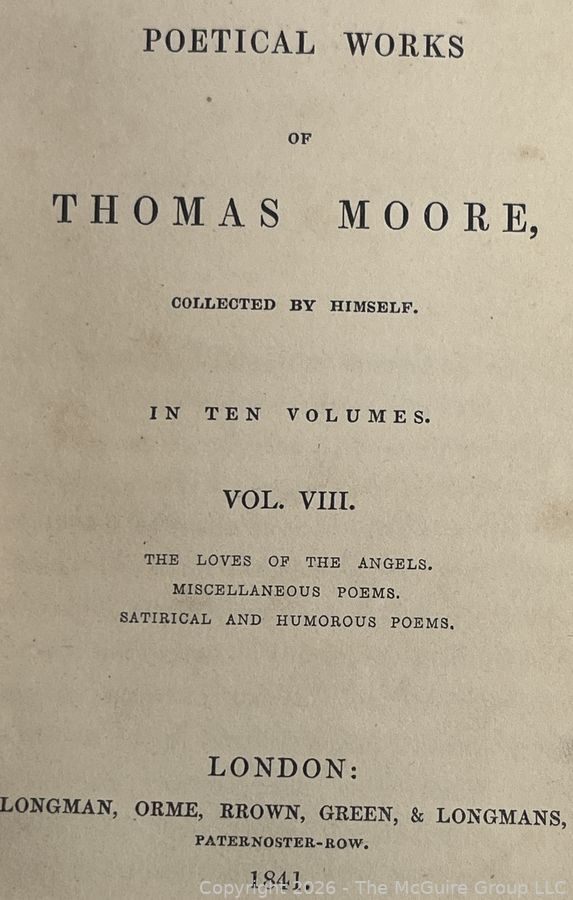 Lot #0337CP: Leather with Marbled Boards Poetical Works of Thomas Moore Book London 1841