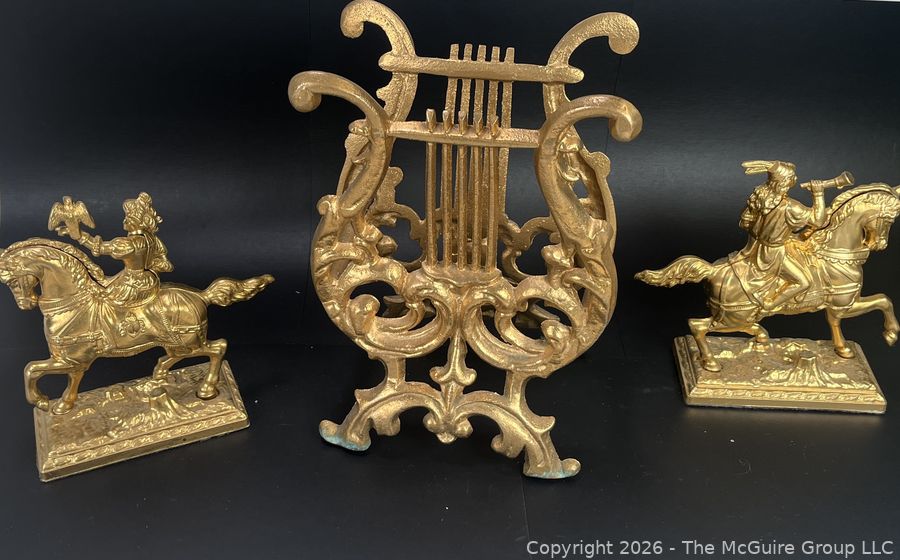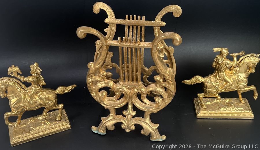 Lot #0433CP: Lyre Form Magazine Holder and Gilt Warriors