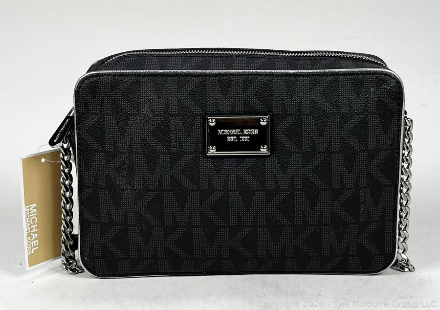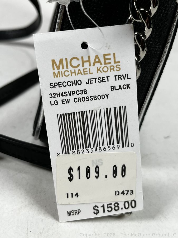 Lot #0405CP: Michael Kors Jet Set Black Signature Crossbody Handbag, New with Tags