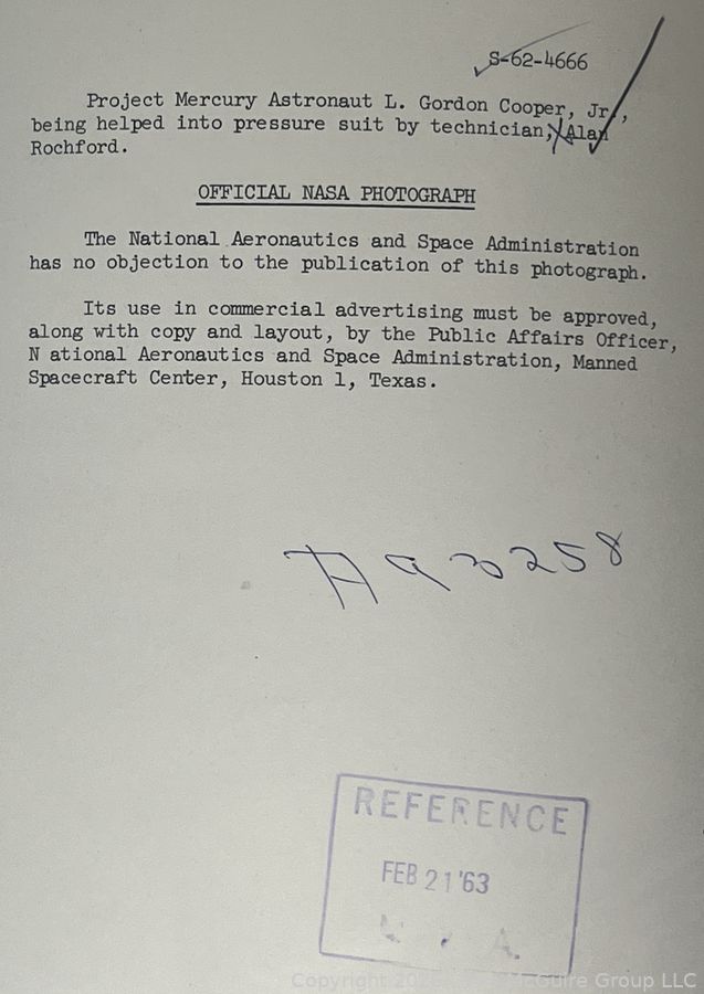 Lot #0298TL: NASA 8x10 BW Press Release Photo of Astronaut Gordon Cooper