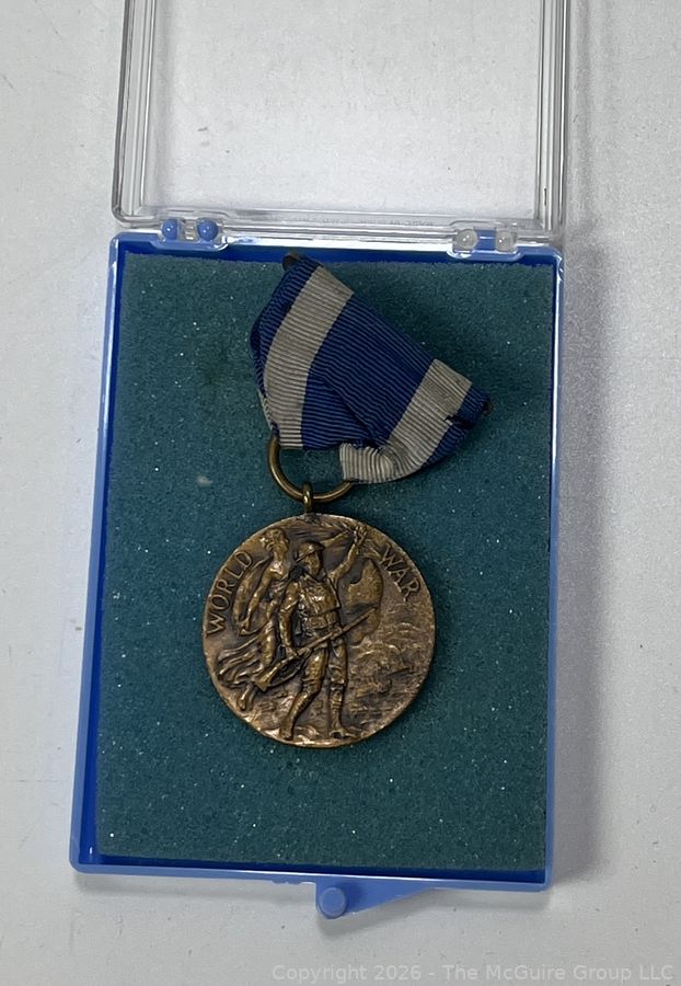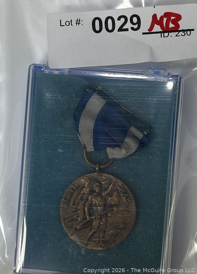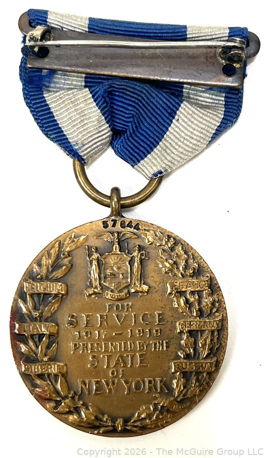 Lot #0029MB: New York State World War I Service Medal With Pin Back Ribbon. Numbered 57844.