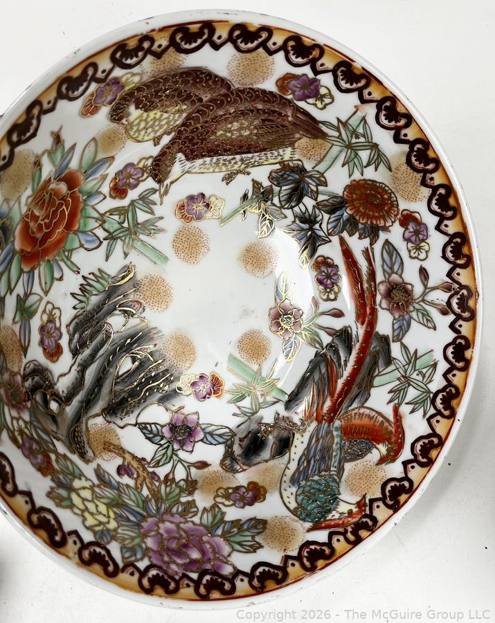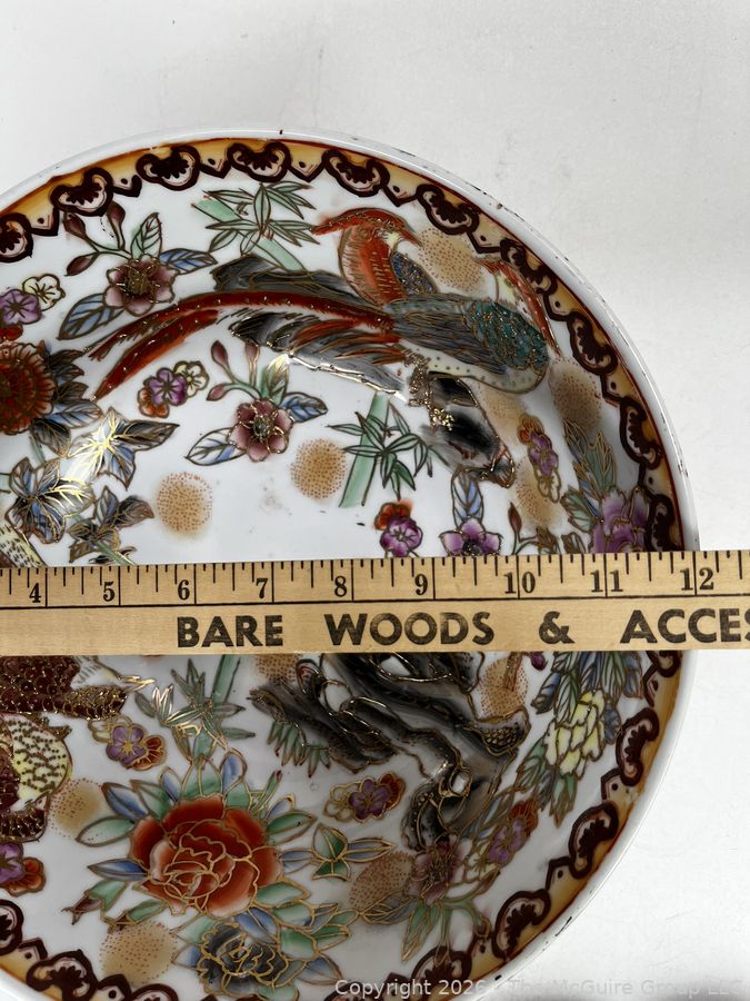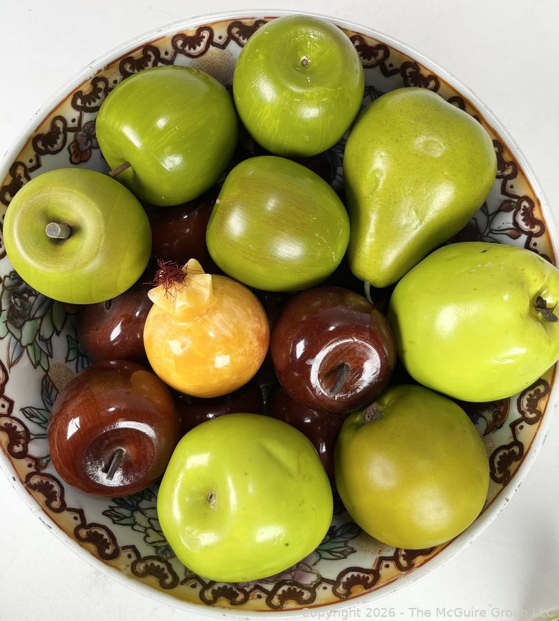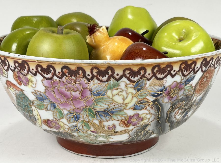 Lot #0363CP: Porcelain Painted Serving Bowl with Artificial Fruit