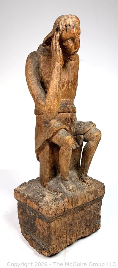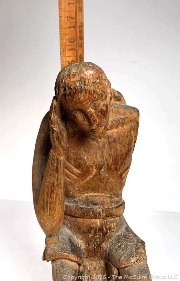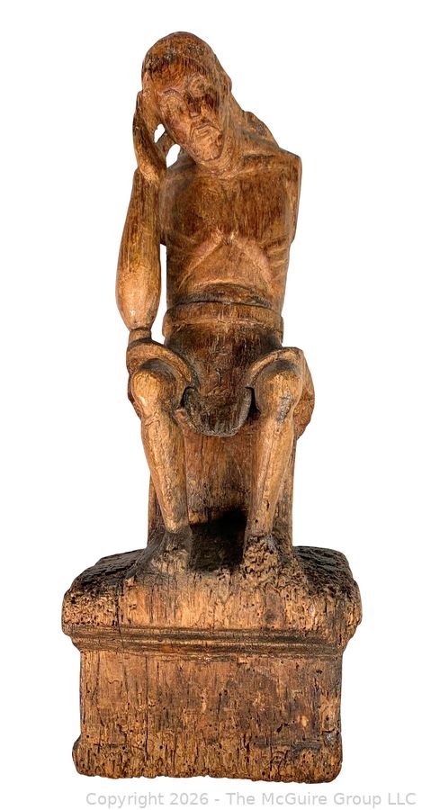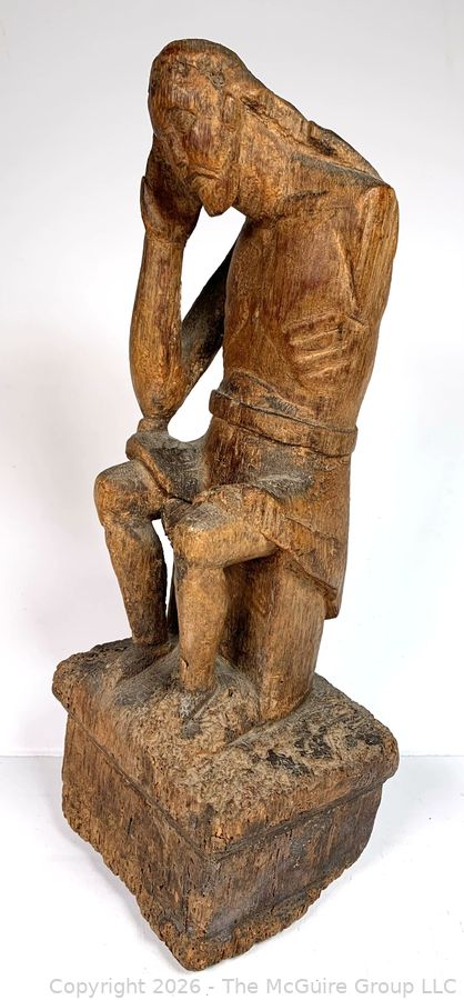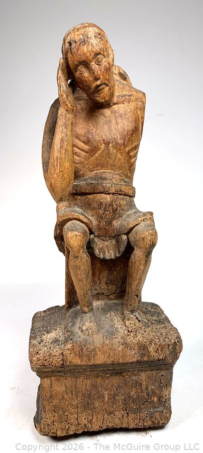 Lot #0105DW: Primitive Carved Wood Figure of Christ, Santos Religious Sculpture