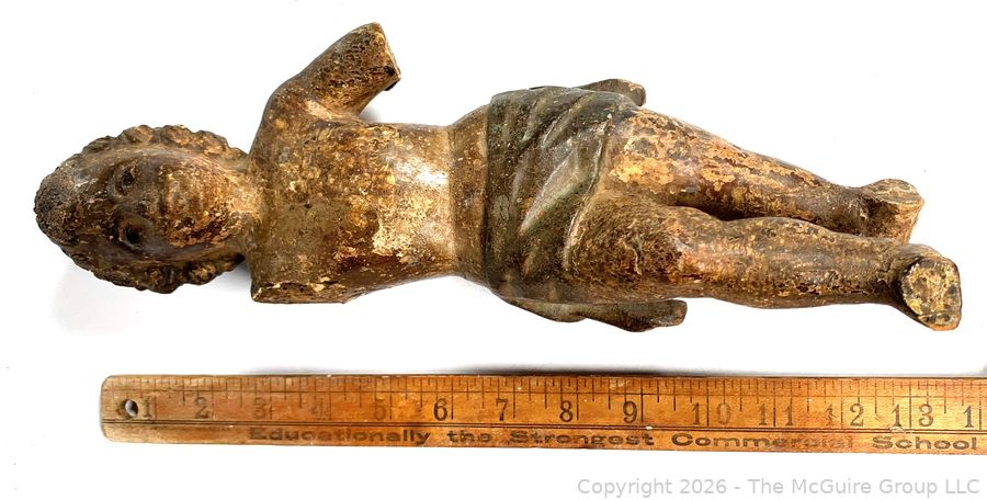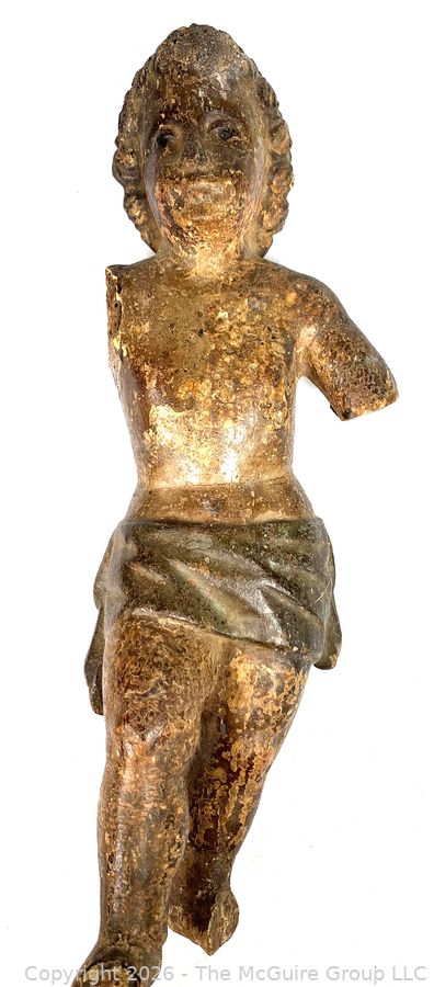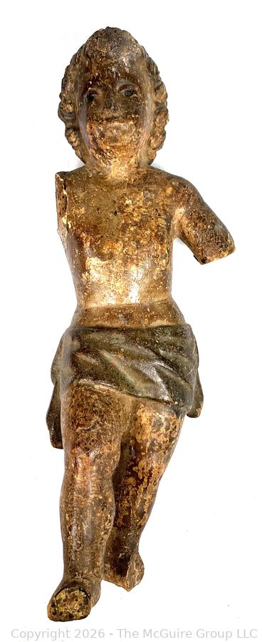 Lot #0114DW: Primitive Carved Wood with Paint Angel, Santos Religious Sculpture