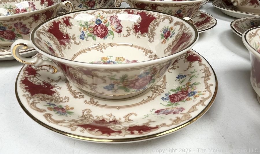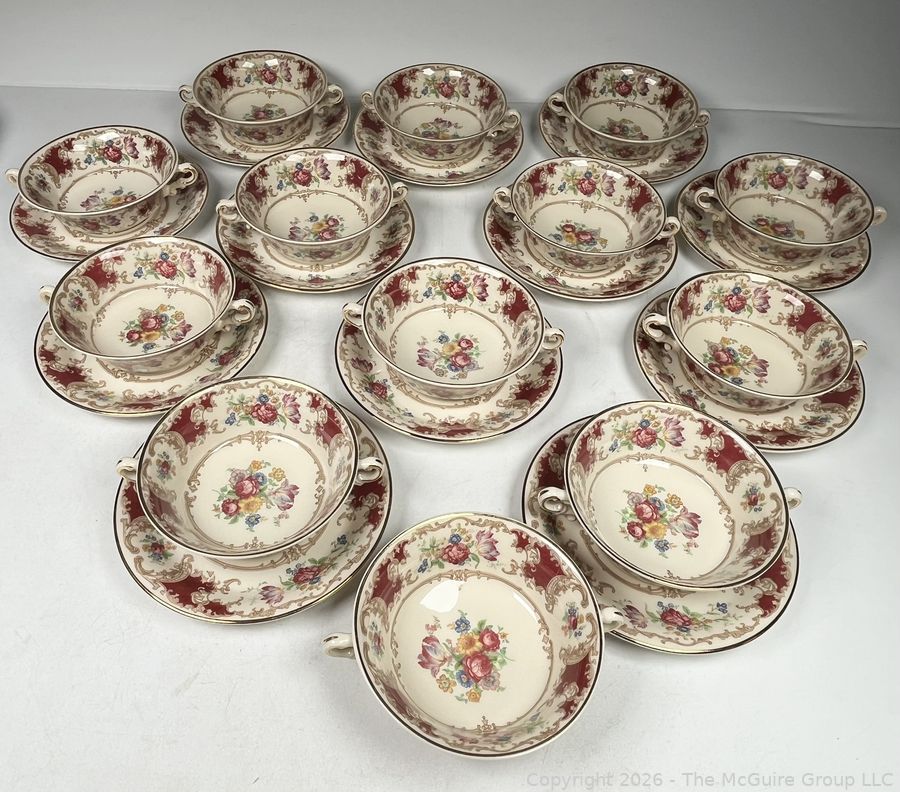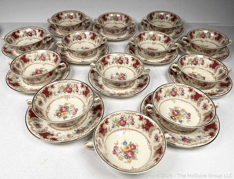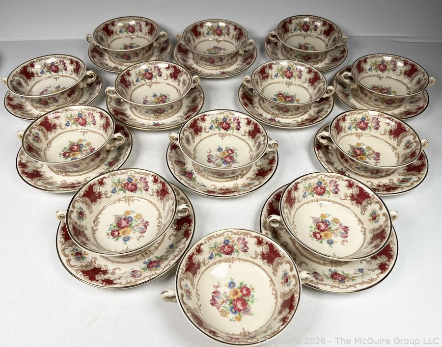 Lot #0276MB: Set of (12) Cups and Saucers Syracuse China Old Ivory Romance Maroon