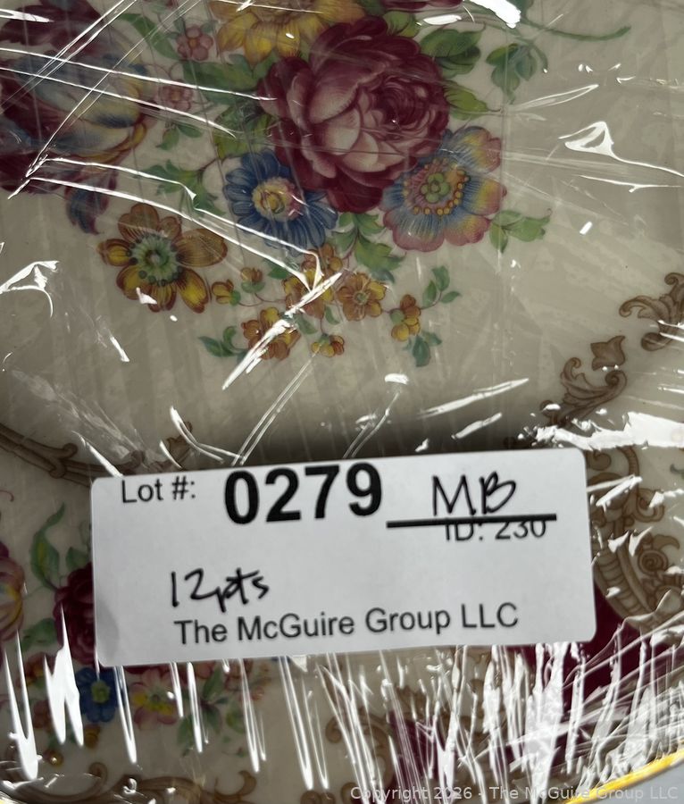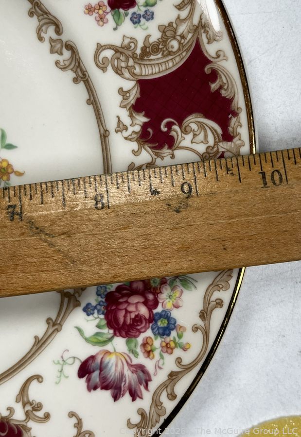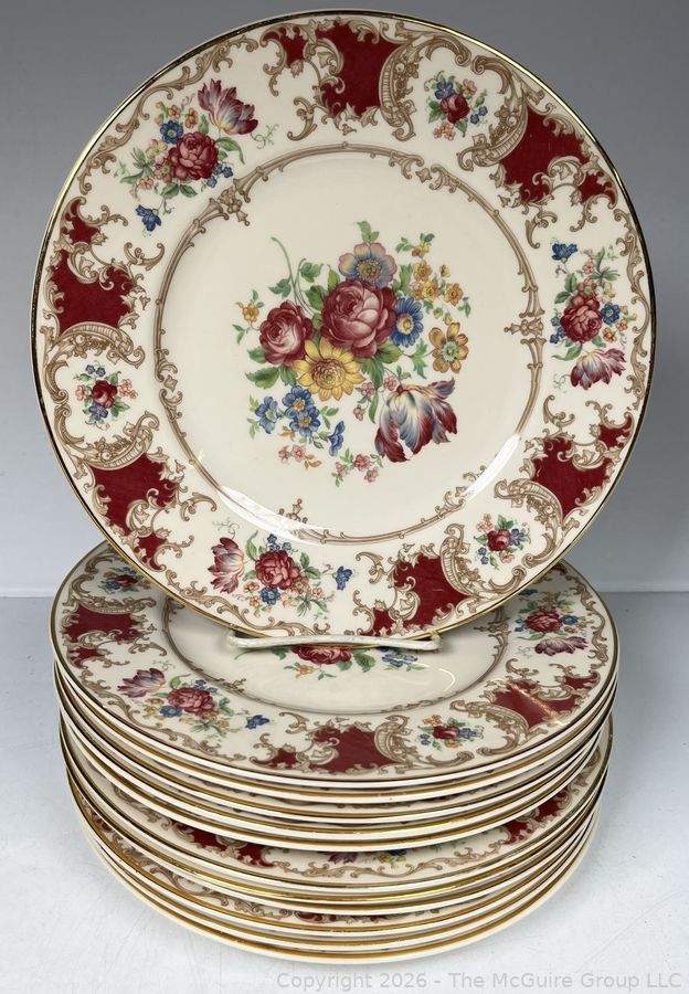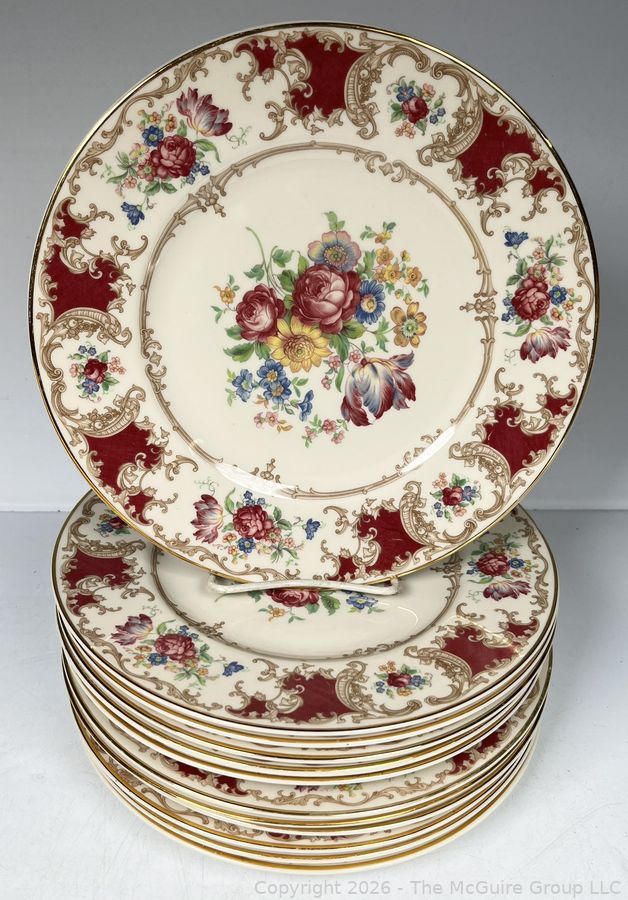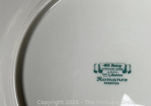 Lot #0279MB: Set of (12) Syracuse China Old Ivory Romance Maroon Dinner Plates