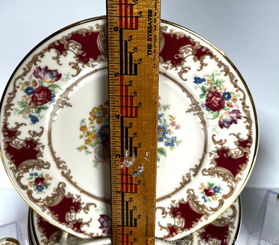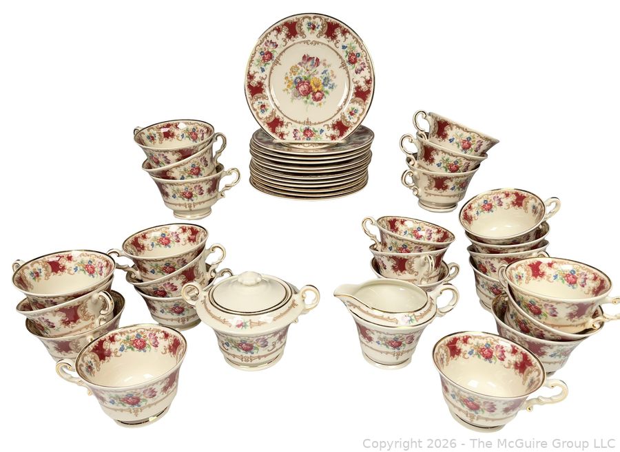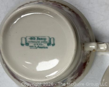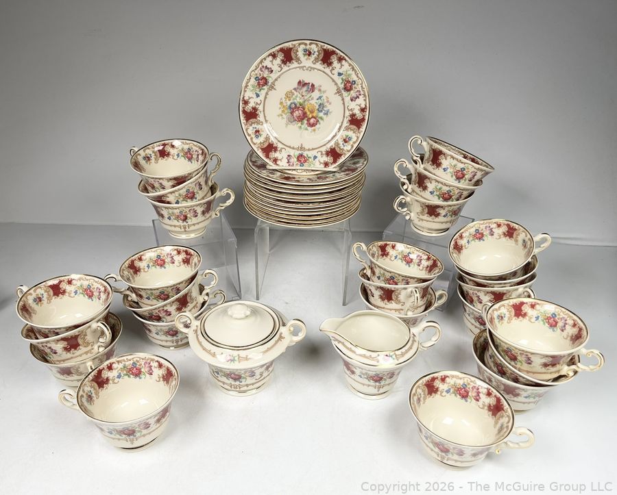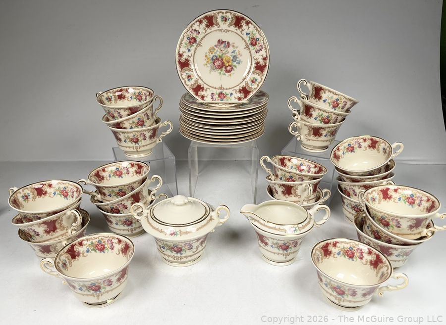 Lot #0282MB: Set Of (12) Syracuse China Old Ivory Romance Maroon Dinnerware