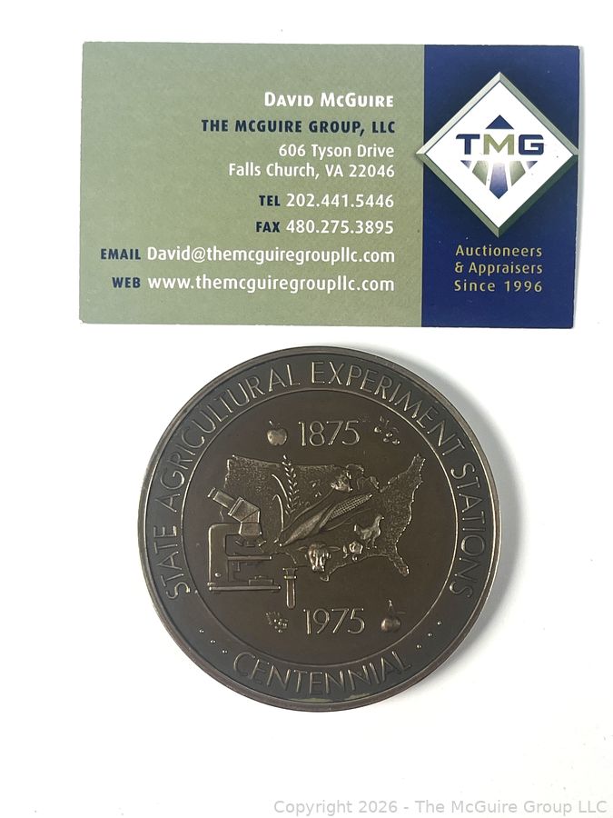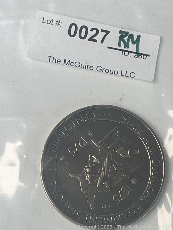 Lot #0027RM: State Agricultural Experiment Stations Centennial 1875-1975 Bronze Medal