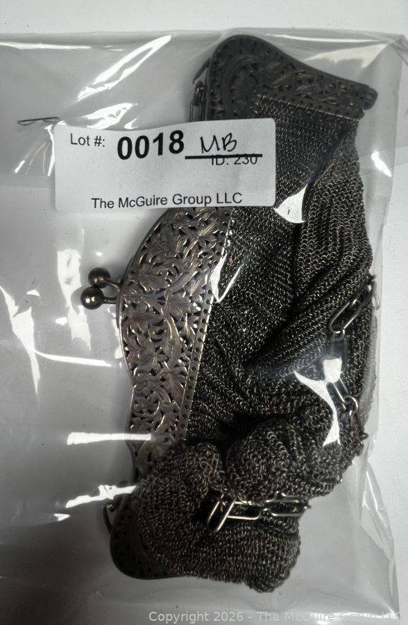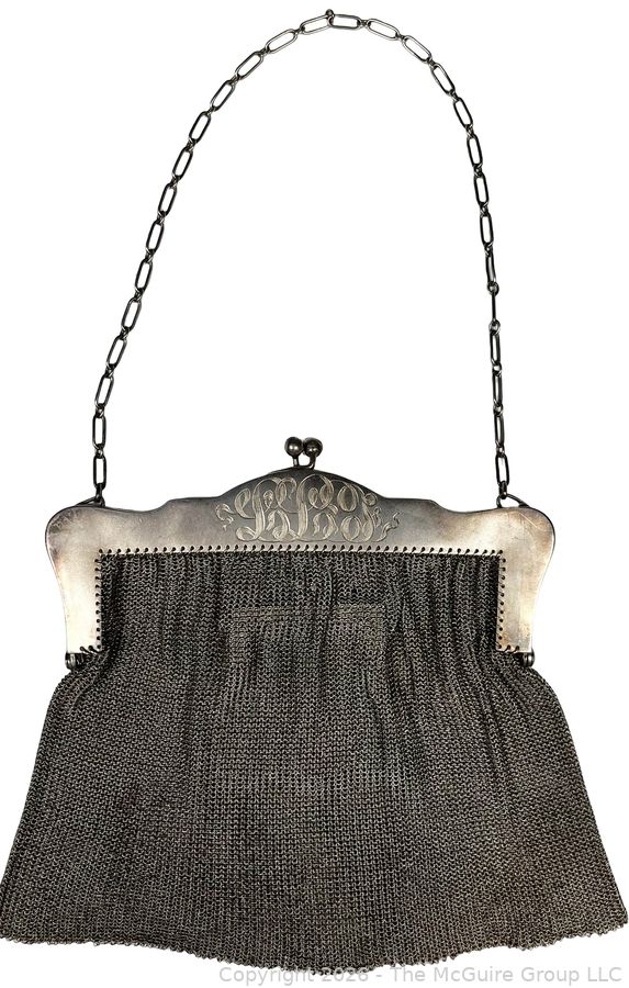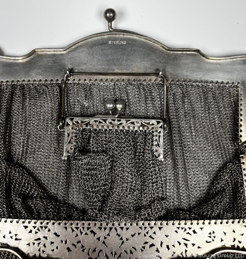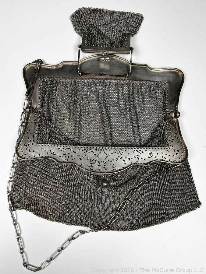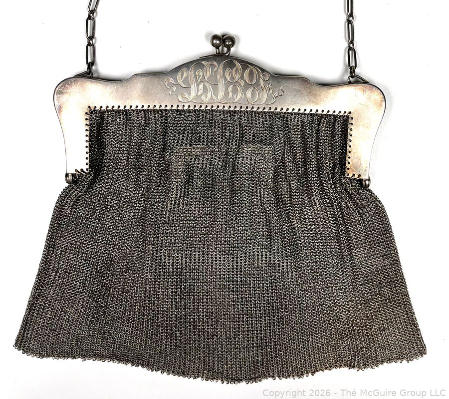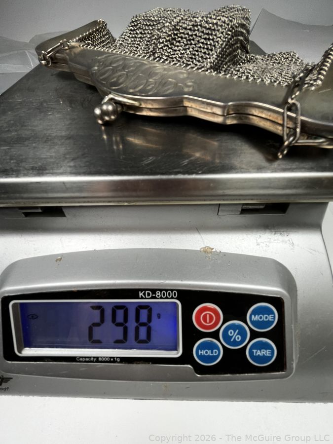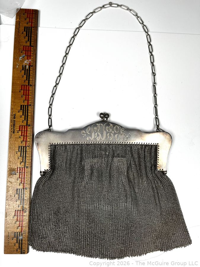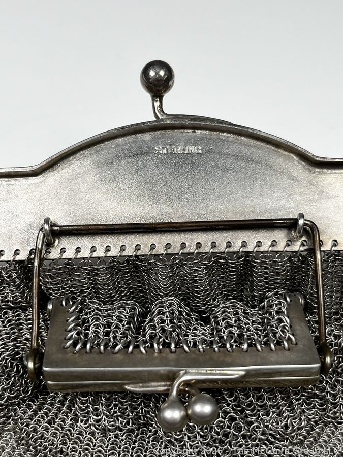 Lot #0018MBA: Sterling Silver Chainmail Mesh Purse Handbag with Attached Coin Purse. 298 grams.