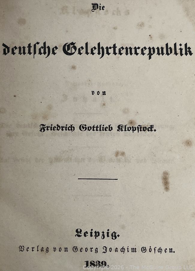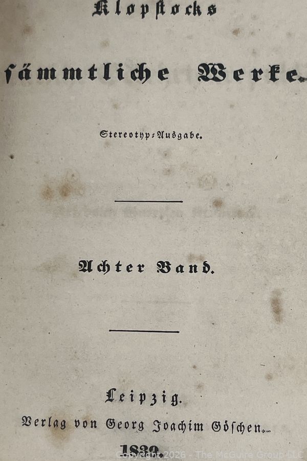 Lot #0345CP: The Complete Works of Friedrich Gottlieb Klopstock Published in Leipzig by Georg Joachim Goschen 1839. Leather Binding