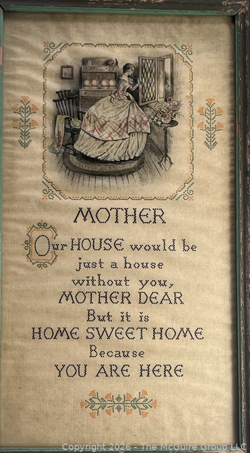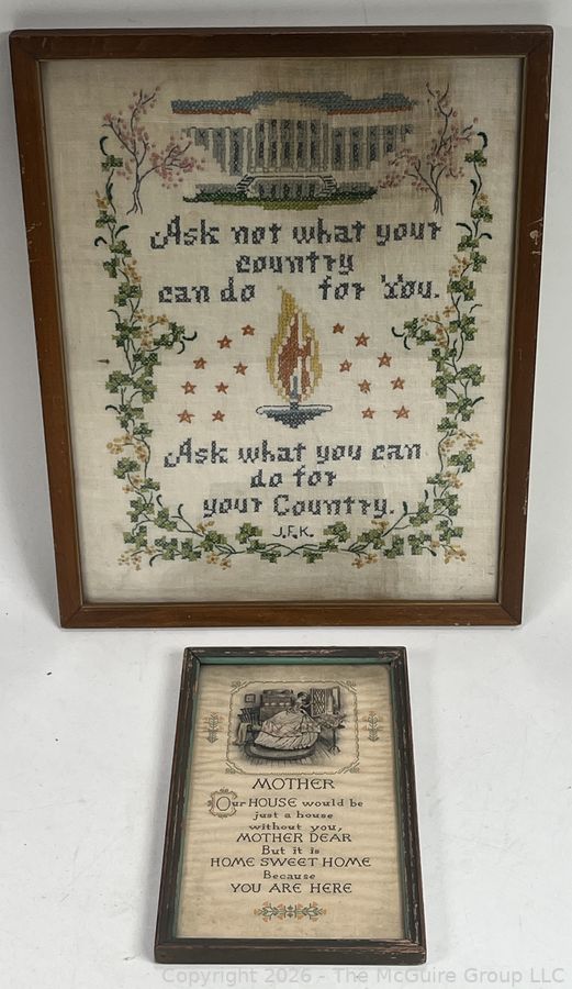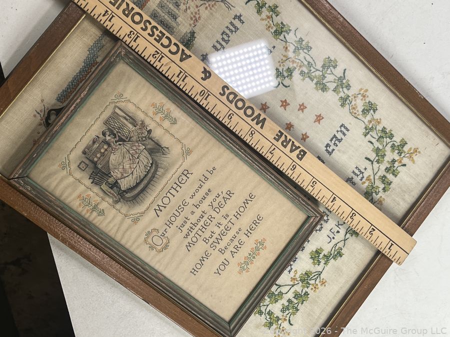 Lot #0088RR: Two (2) Framed Under Glass Cross Stitch Samplers