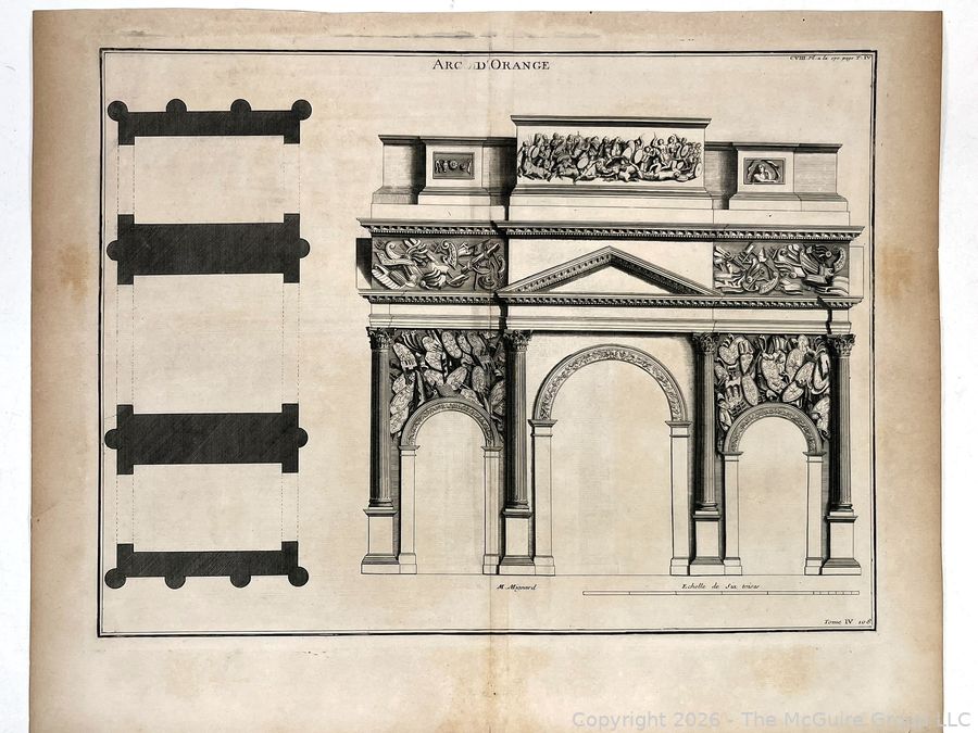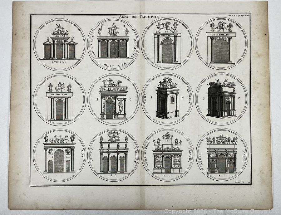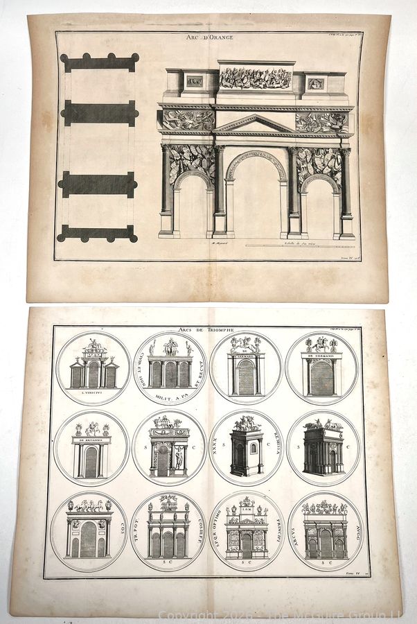 Lot #0206CS: Two plates #170 and 172 from French book on architecture: L’Antiquité Expliquée et Représentée en Figures (Bernard de Montfaucon) 1st ed. 1719