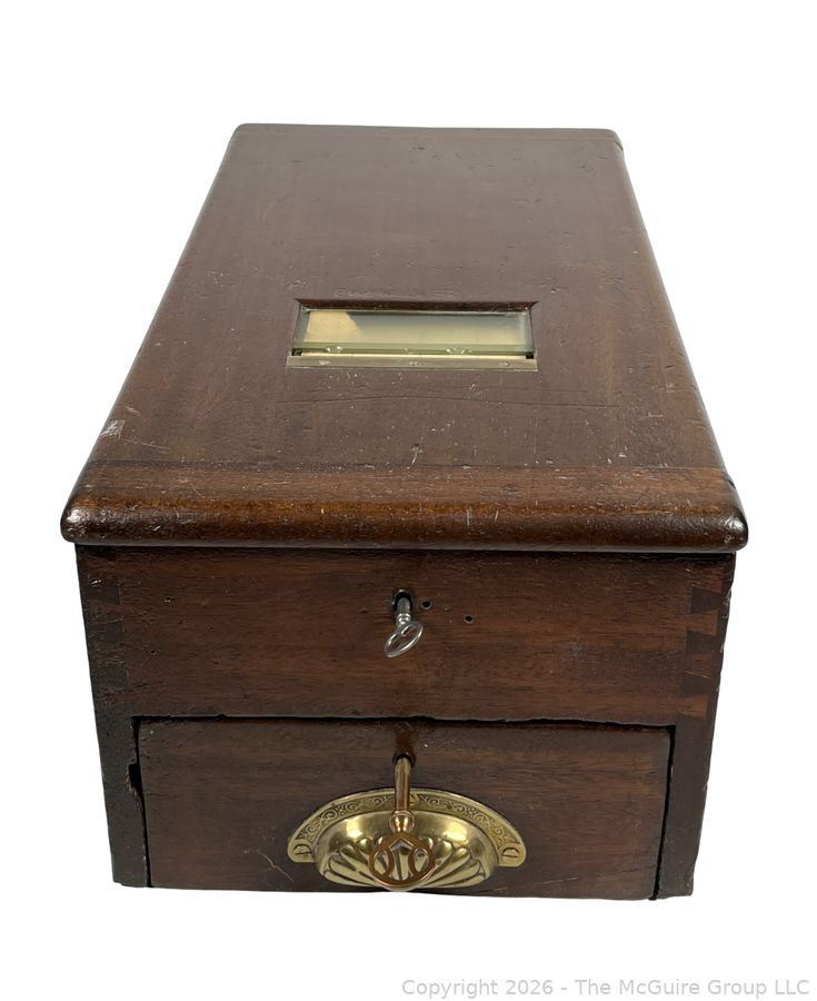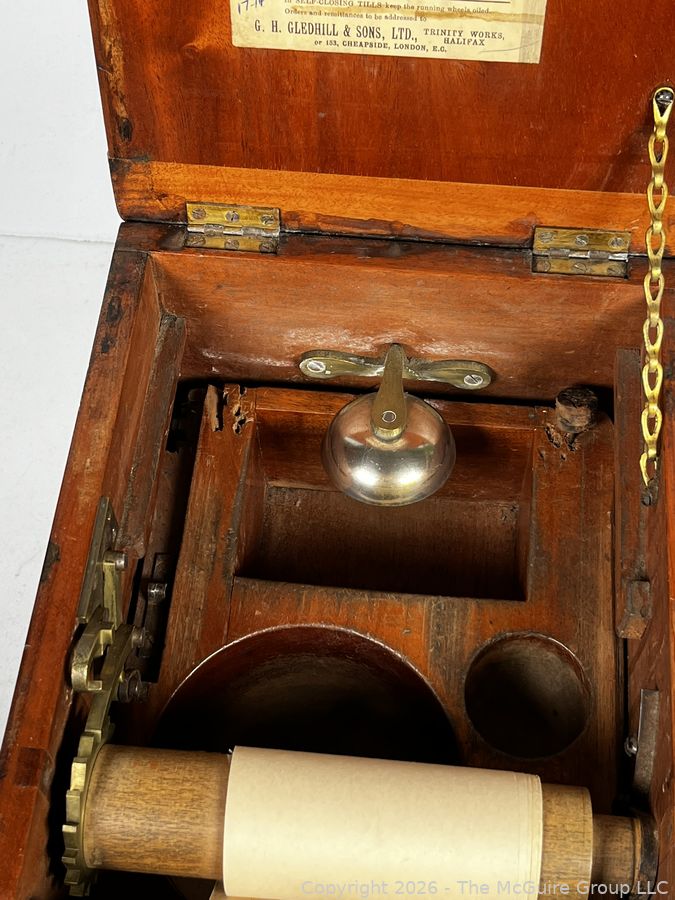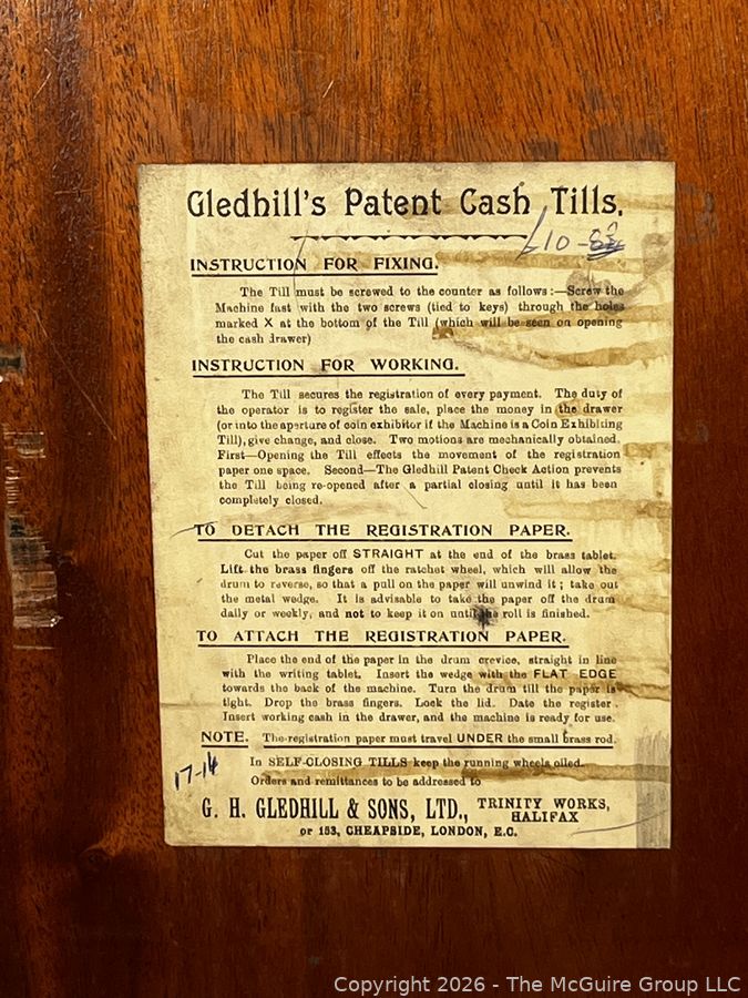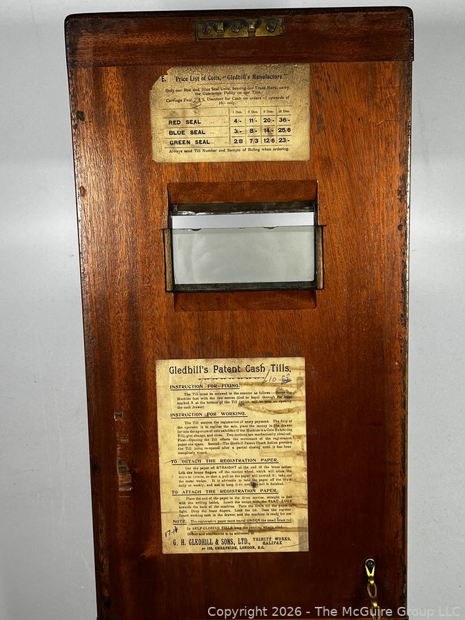 Lot #0015CP: Wood-Cased G.H. Gledhill & Sons Patent Cash Till, patented in 1886 in Halifax and London.