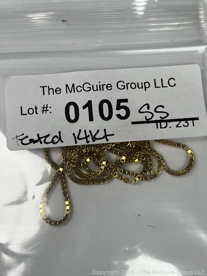 Lot #0105SS: 14KT Yellow Gold Box Chain, No Clasp. 4 grams