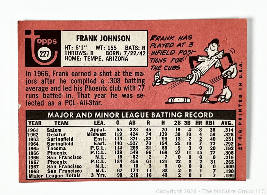 Lot #0179CM: 1969 Topps #227 Frank Johnson Baseball Card