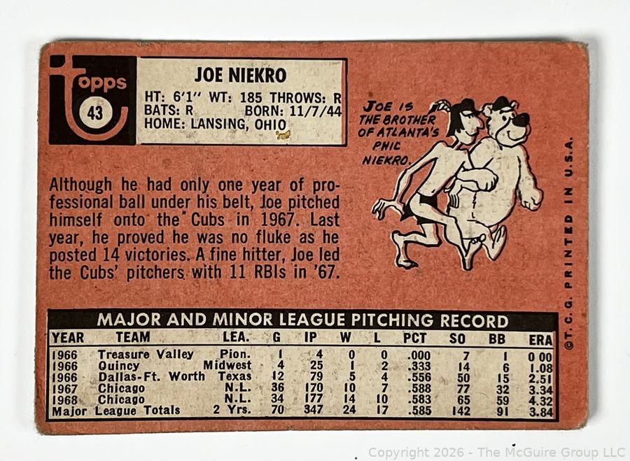 Lot #0197CM: 1969 Topps #43 Joe Niekro Baseball Card