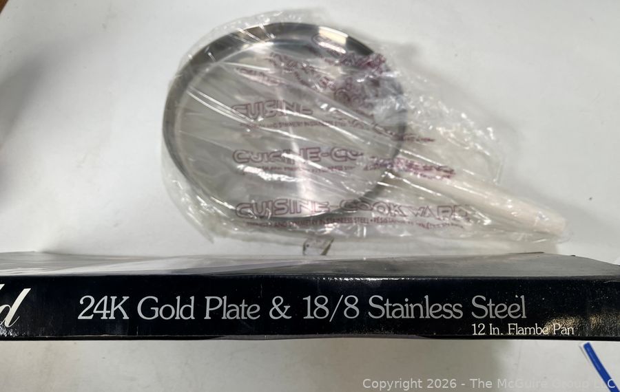 Lot #0141CP: 24KT Gold Plate & 18/8 Stainless Steel Flambe Pan New in Box