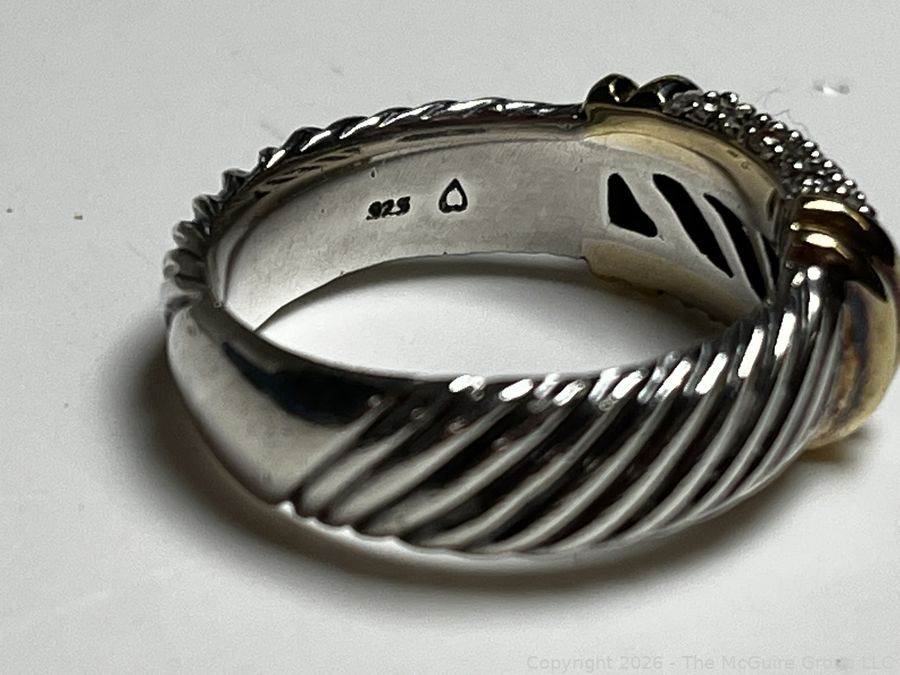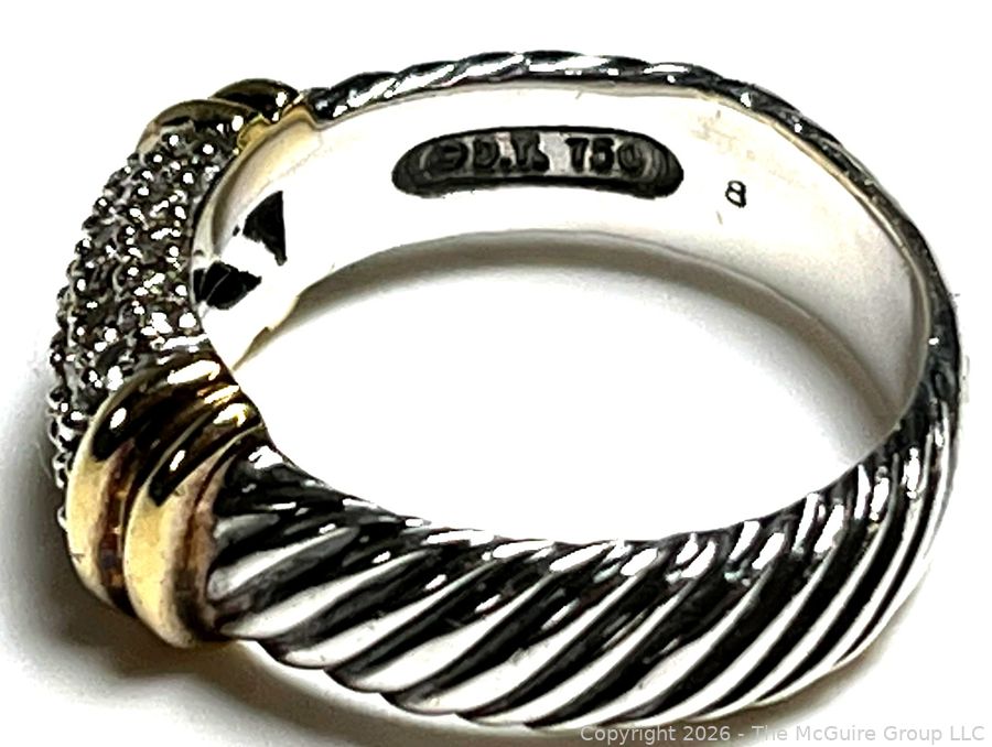 Lot #0061SS: David Yurman Sterling 18k Gold Vintage Metro Pave Diamond Band Ring
