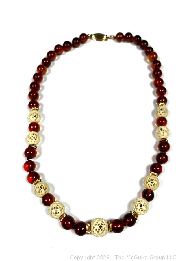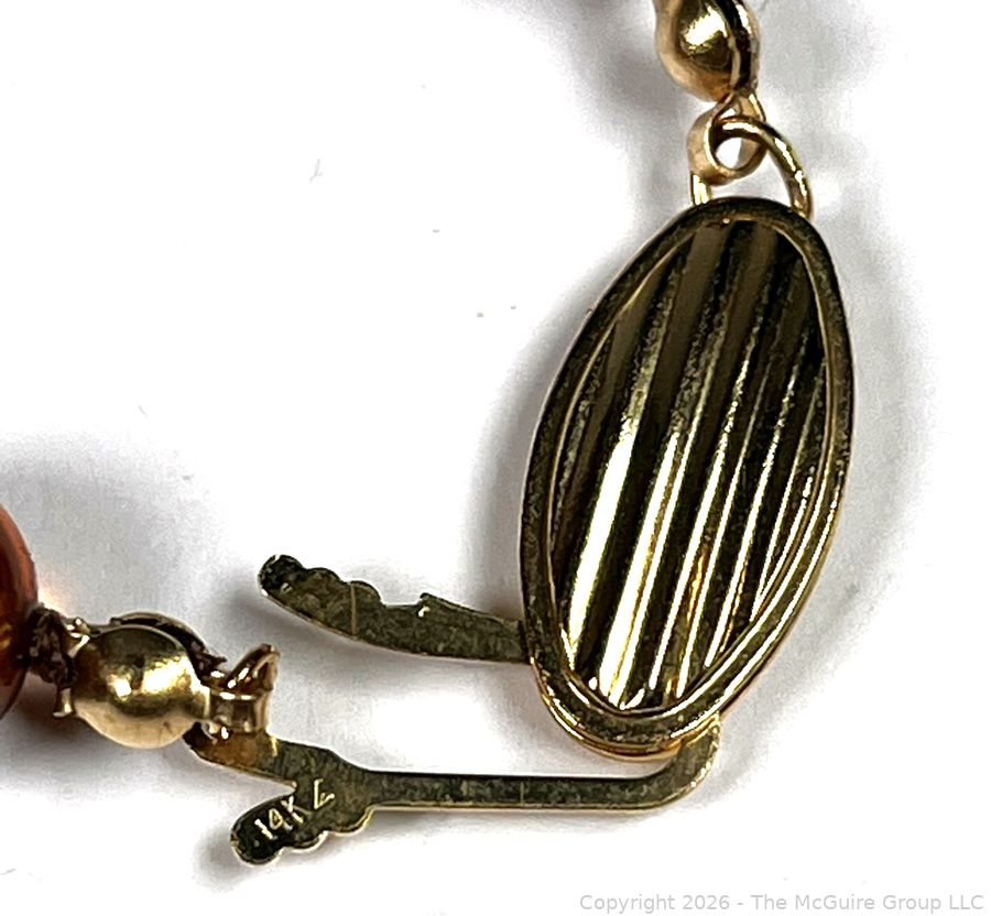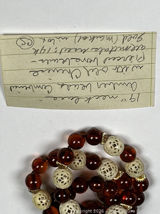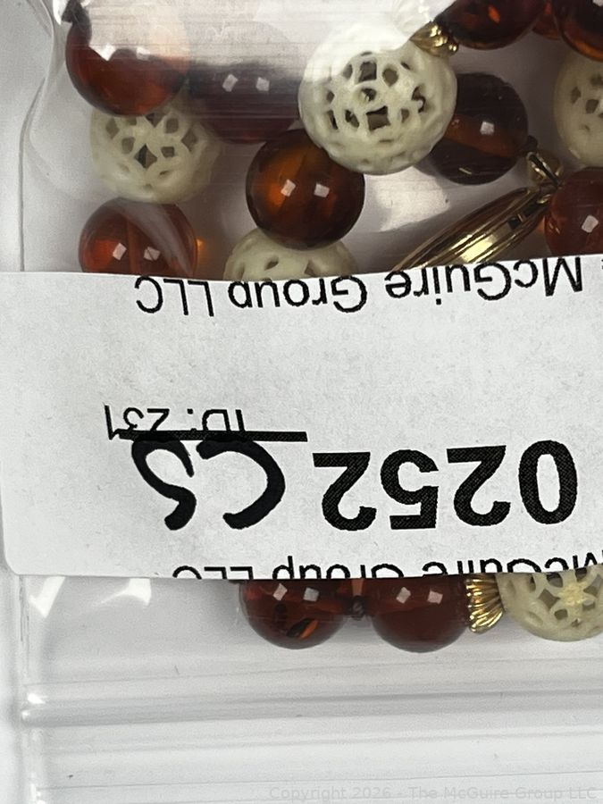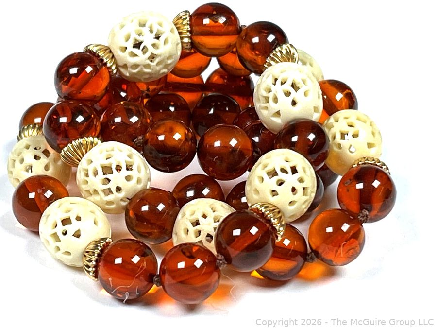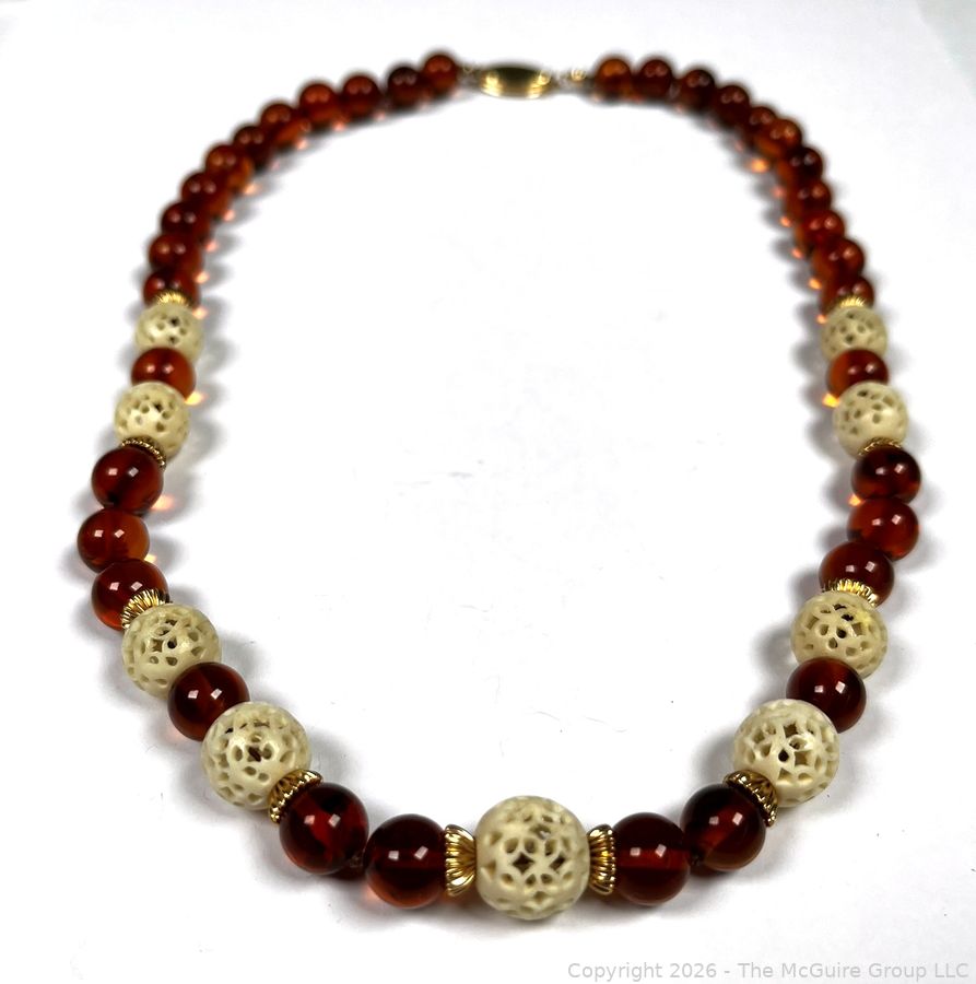 Lot #0252CS: Amber with Chinese Pierced Bone Beads and 14KT Yellow Gold Findings