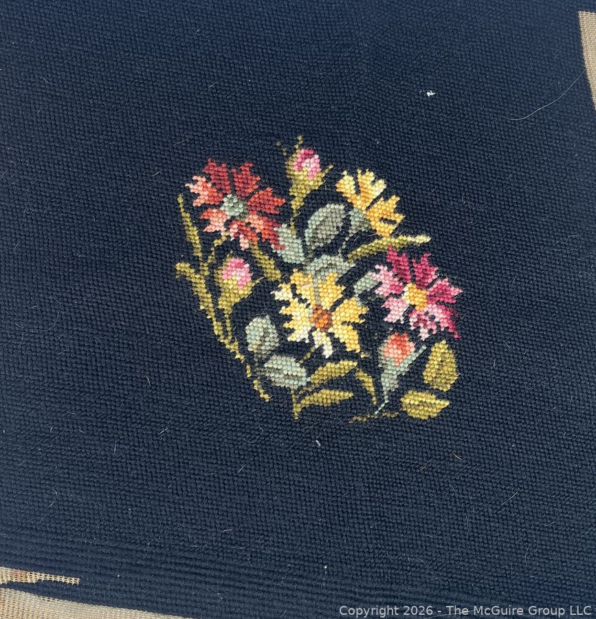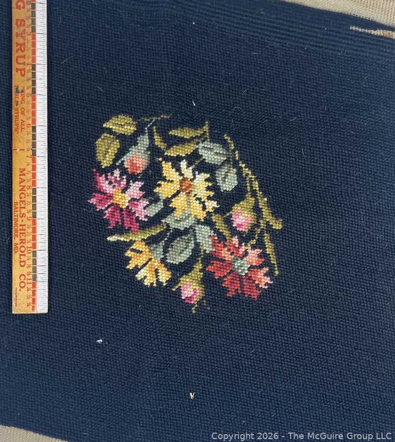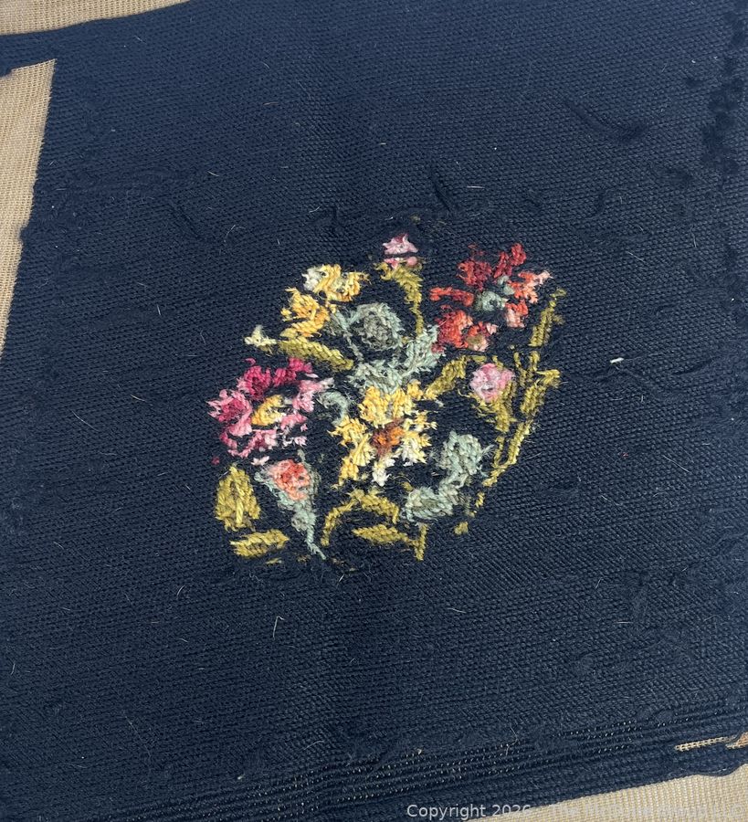 Lot #1008CP: Blue Completed Needlework Needlepoint Canvas of Flowers