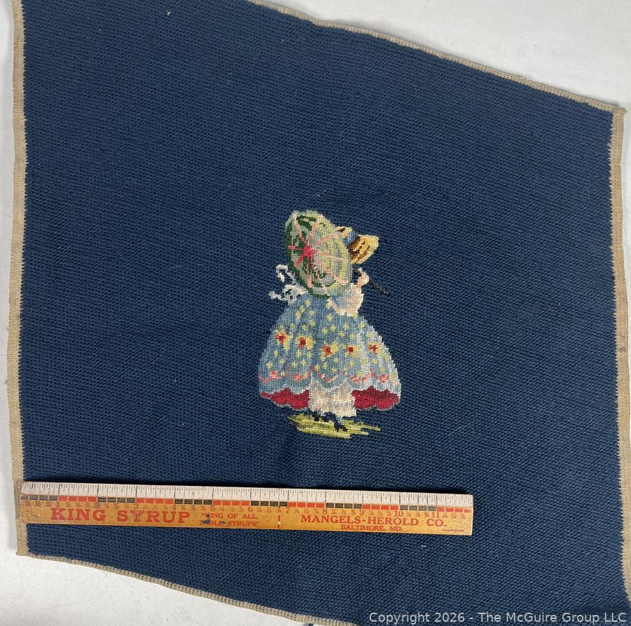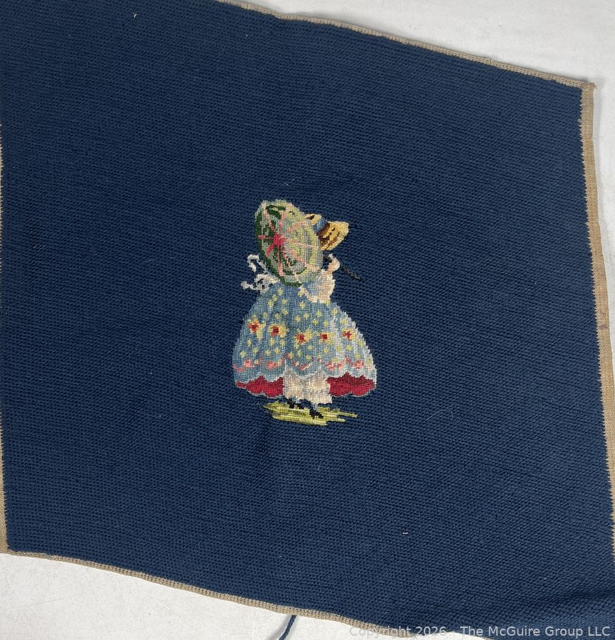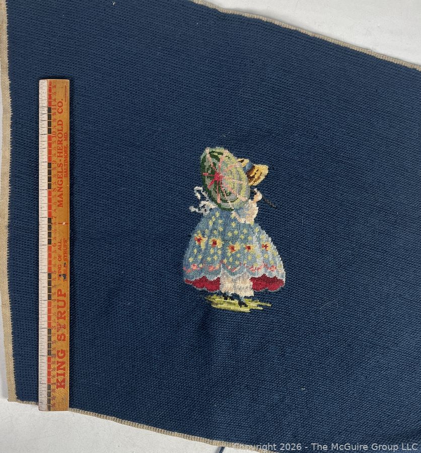 Lot #1005CP: Blue Completed Needlework Needlepoint Canvas of Girl