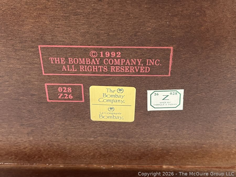 Lot #0412CP: Bombay Co. Jewelry Box with Black Velveteen Lining