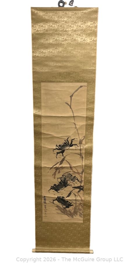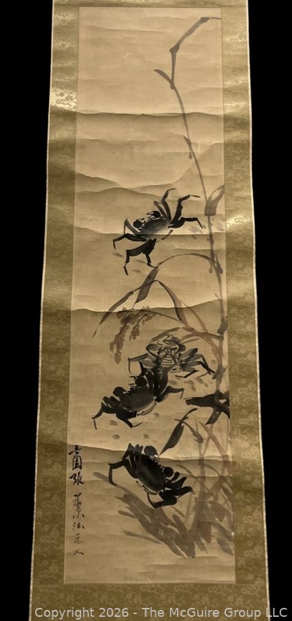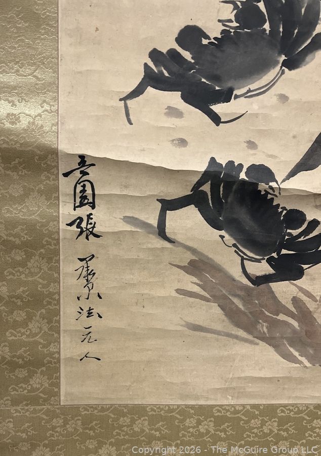 Lot #0059MB: Chinese Silk Scroll Painting of Birds and Lotus Flower, Yuanren, 1897. 17 x 70"
