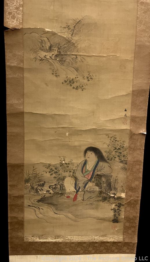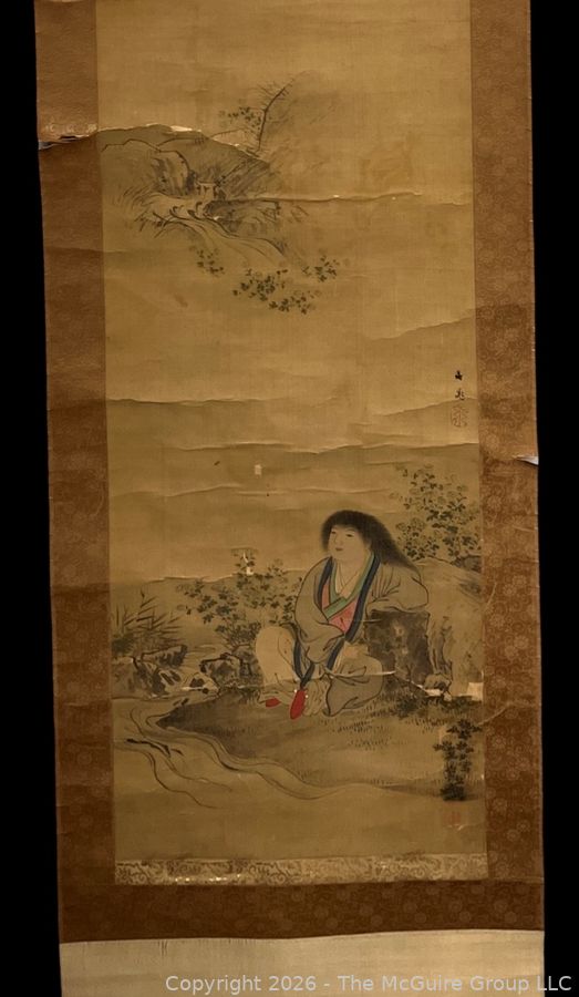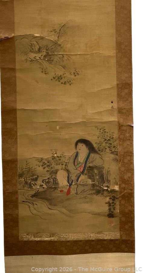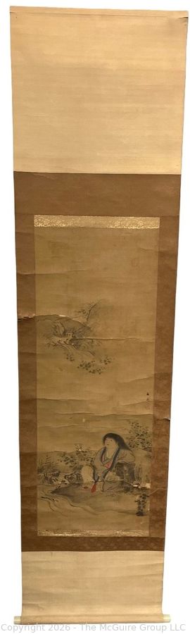 Lot #0161mb: Chinese Silk Scroll Painting of Woman in Wooden Scroll Box.18 x 72"