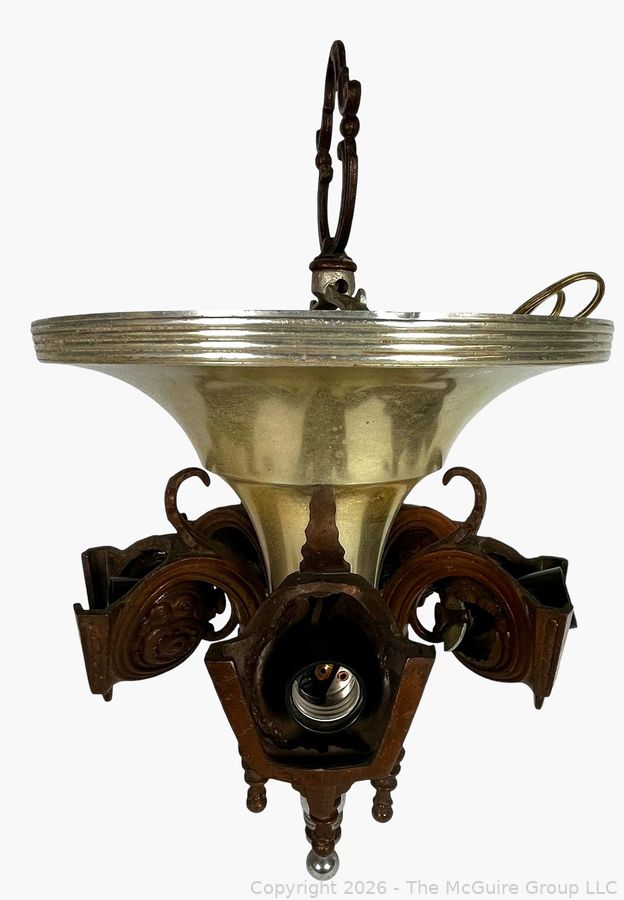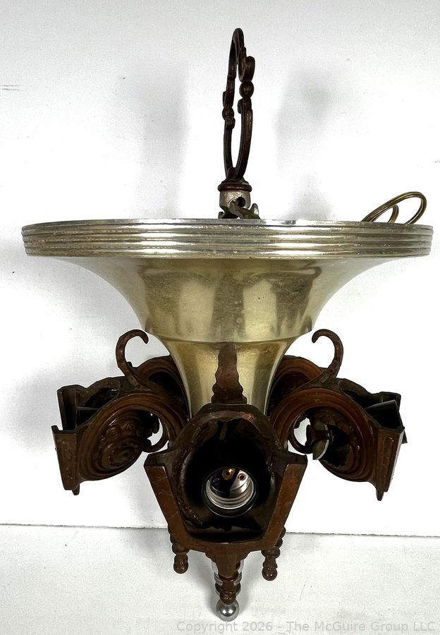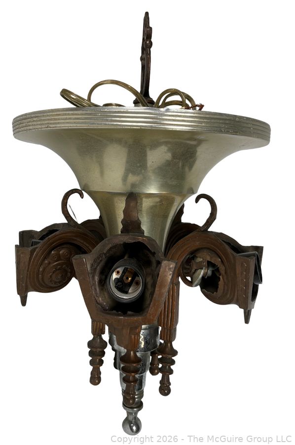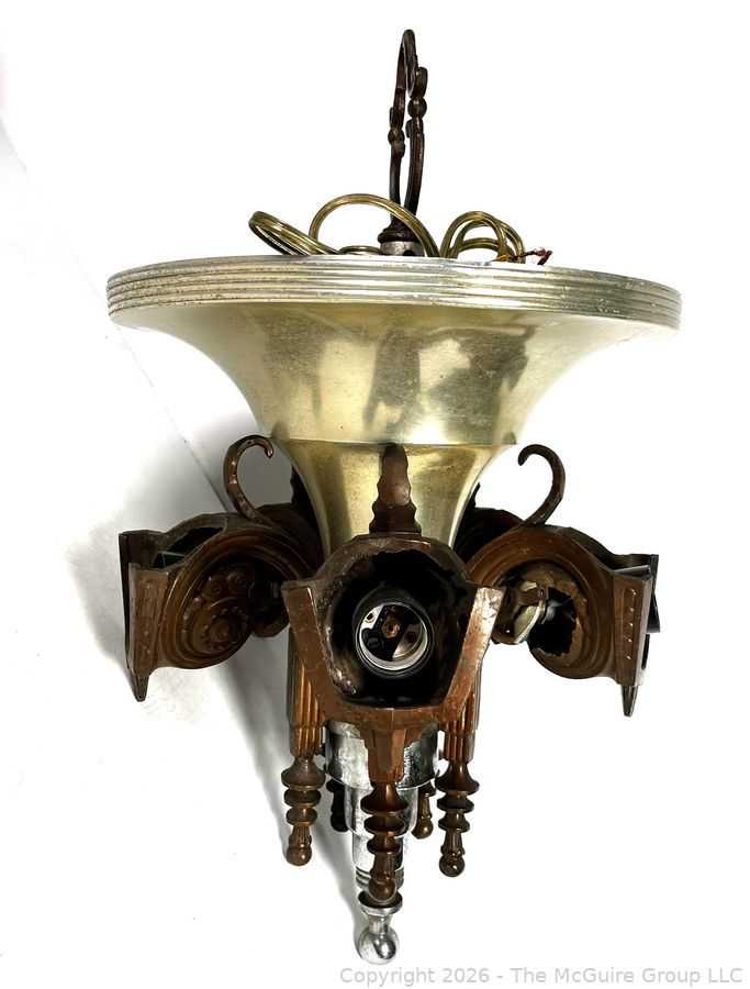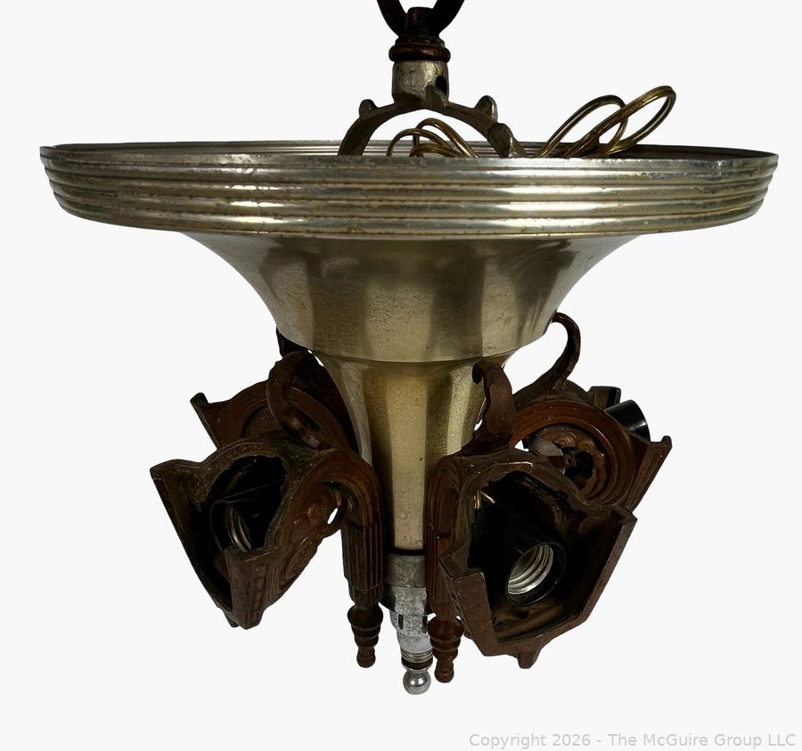 Lot #0030CS: Chrome Art Deco Pendant Chandlier by Consolidated Glass Co