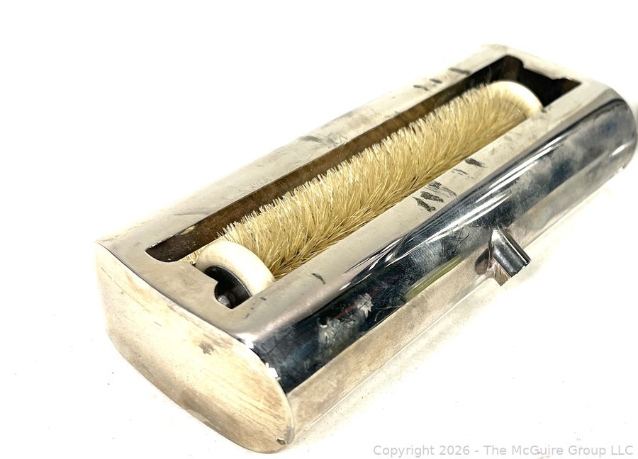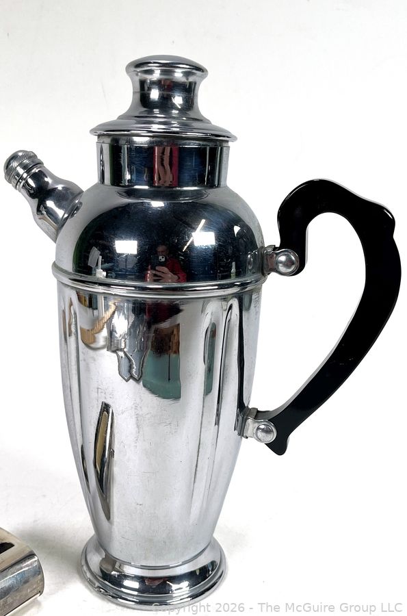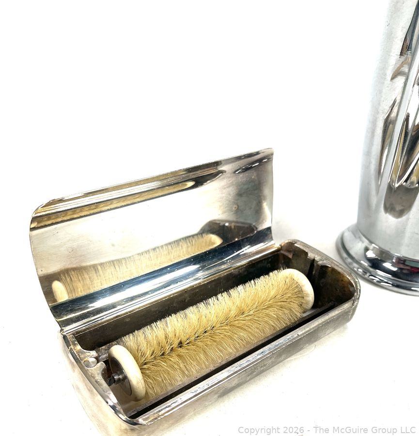 Lot #0218MB: Chrome Cocktail Shaker with Black Bakelite Handle & Silver Plated Lint Brush