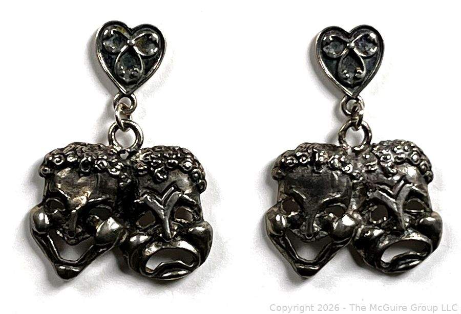 Lot #0201CS: Comedy Tragedy Masks Sterling Silver Earrings