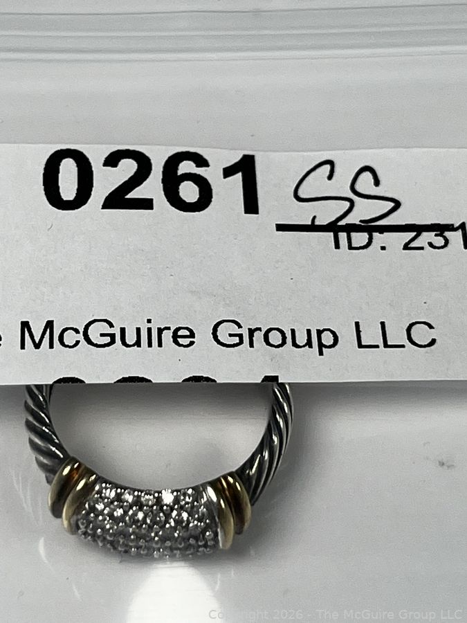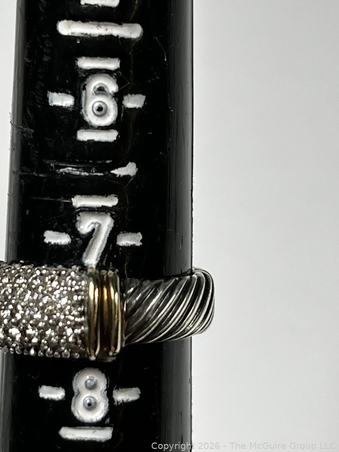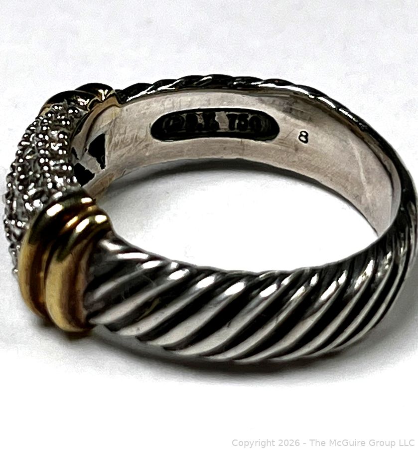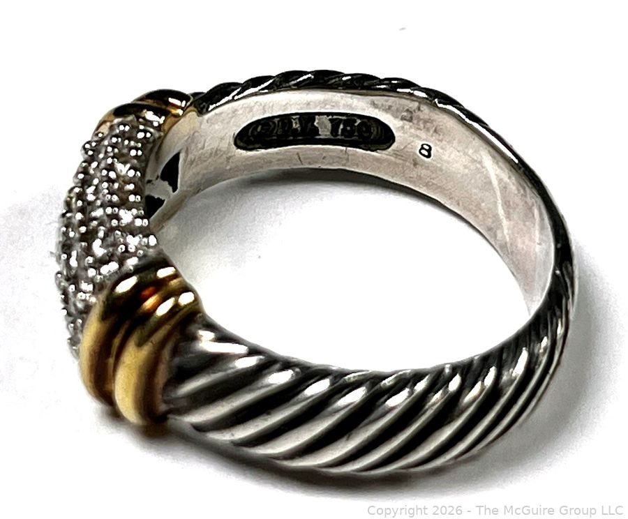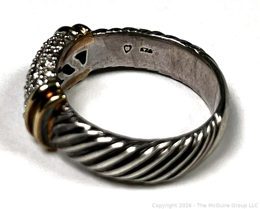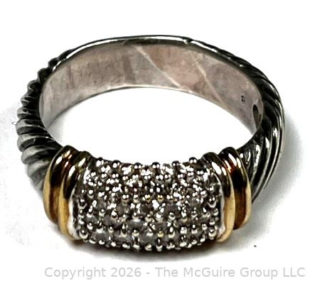 Lot #0061SS: David Yurman Sterling 18k Gold Vintage Metro Pave Diamond Band Ring