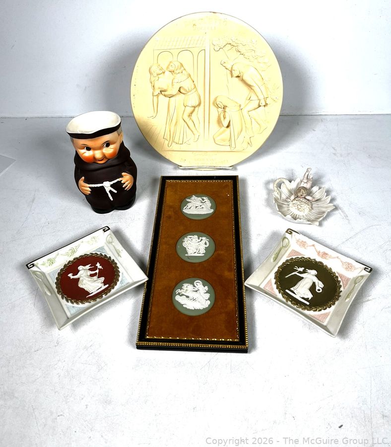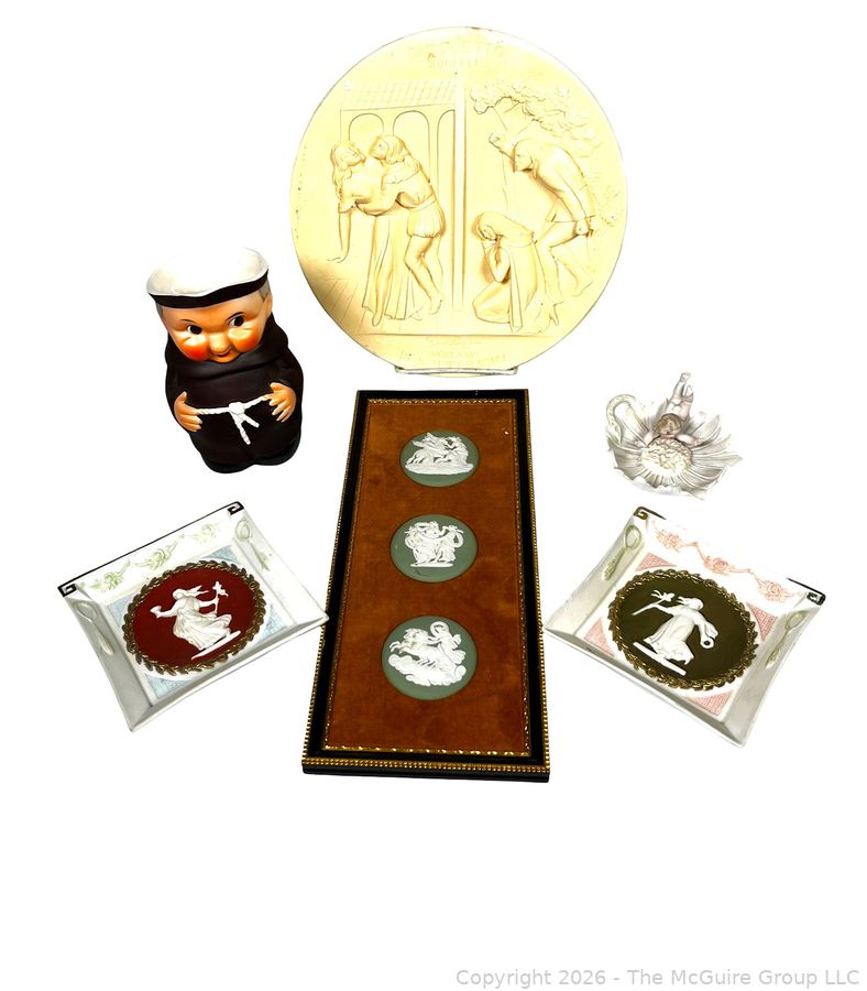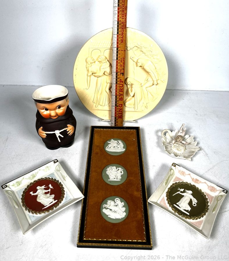Lot #0240MB: Decorative Collectibles Including Wedgwood Plaque and Goebel Friar Tuck Creamer