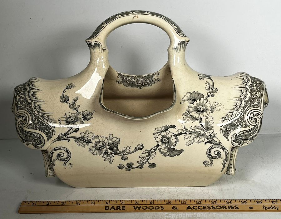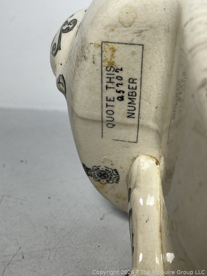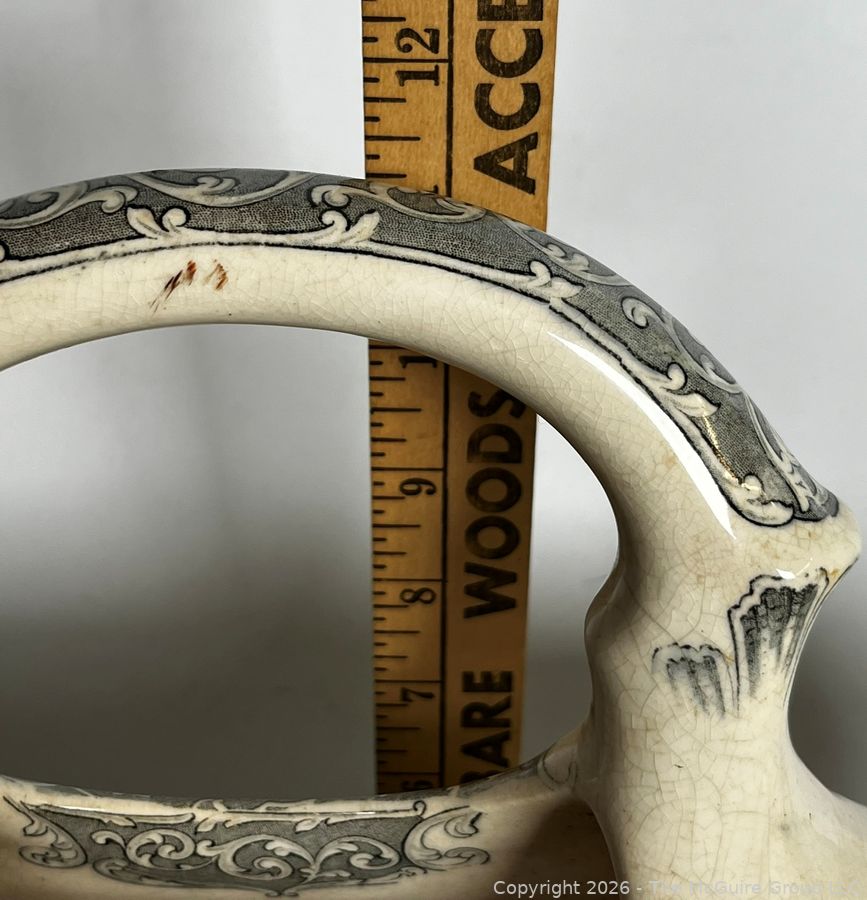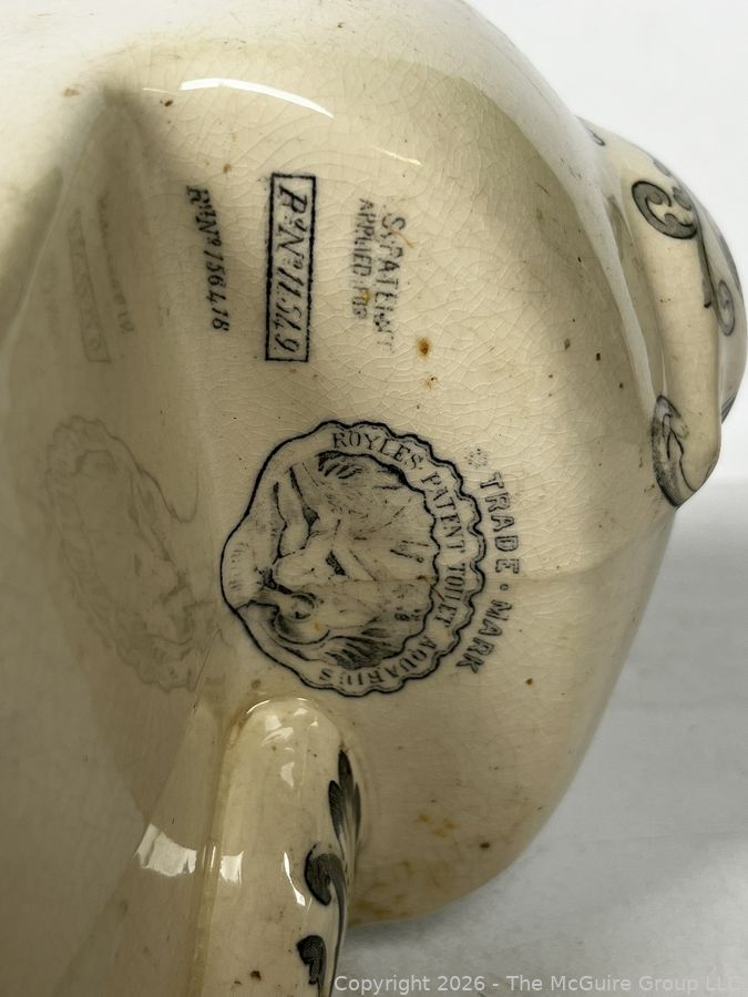 Lot #0123MB: Doulton Burslem Blue and White Toilet Jug Made in England by Royles Patent Toilet, 1880.