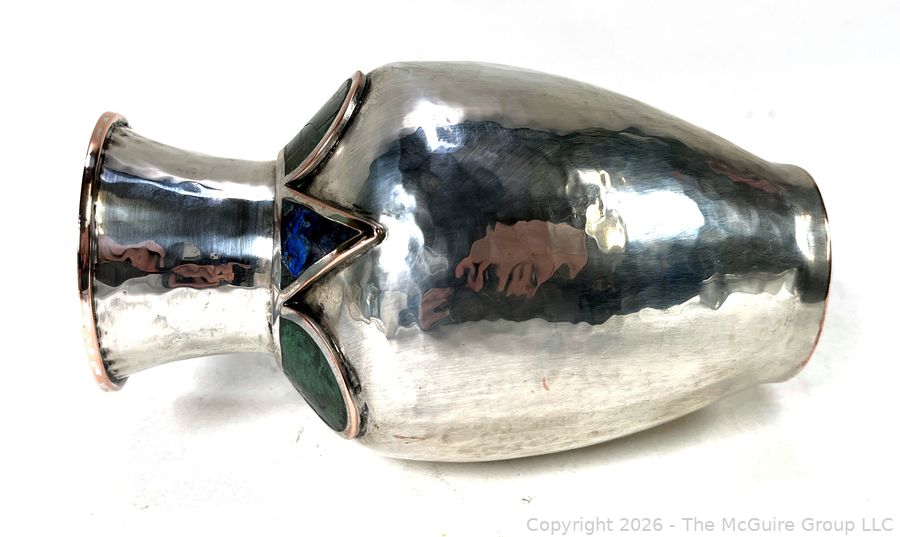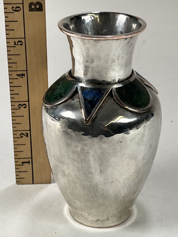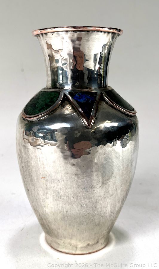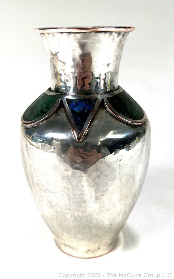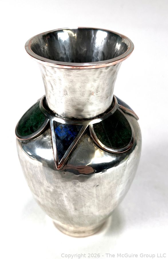 Lot #0121PB: Emilia Castillo Taxco Silver Plate with Semi Precious Stone Inlays Vase