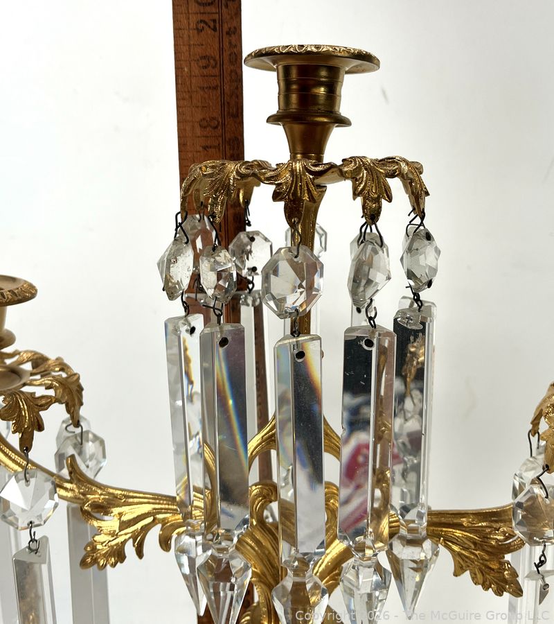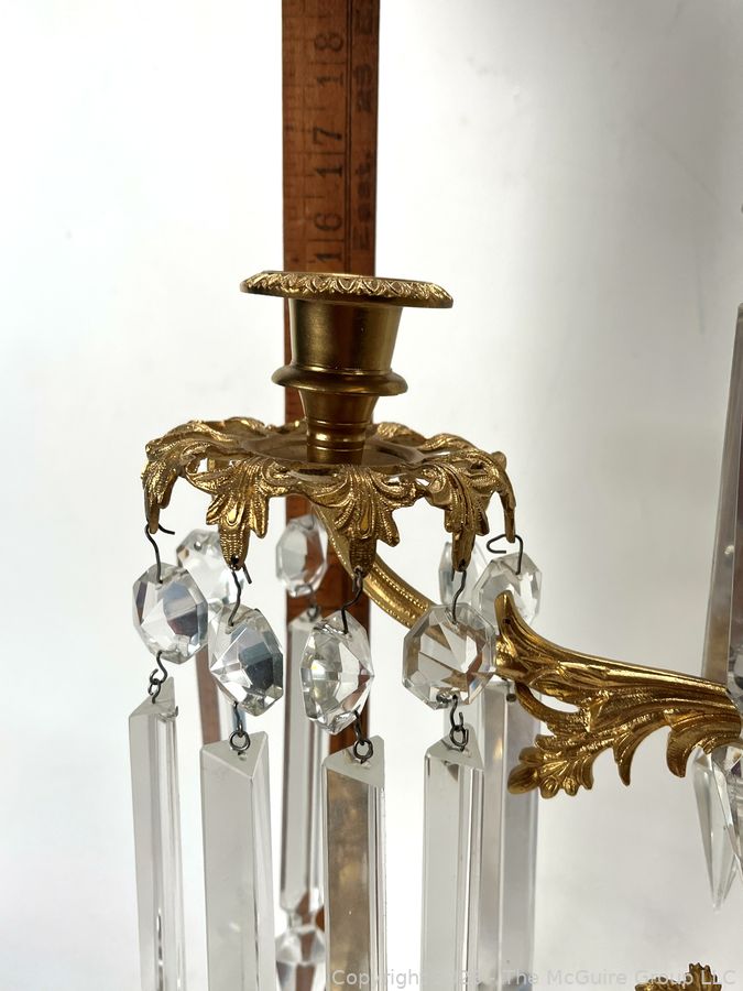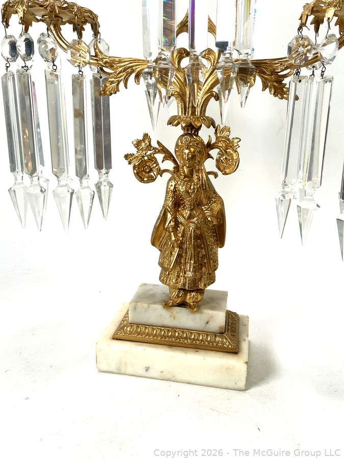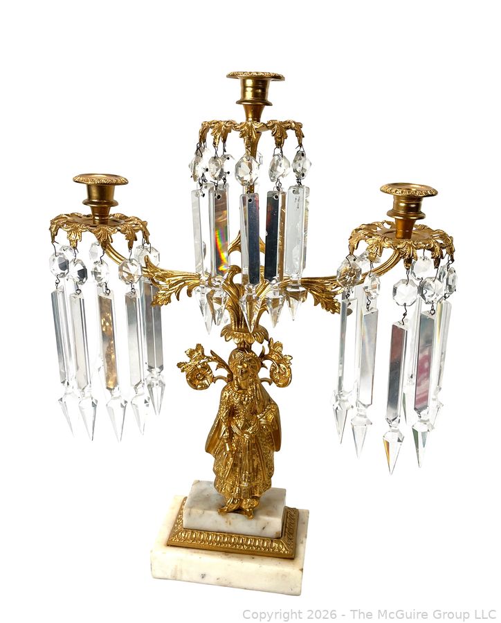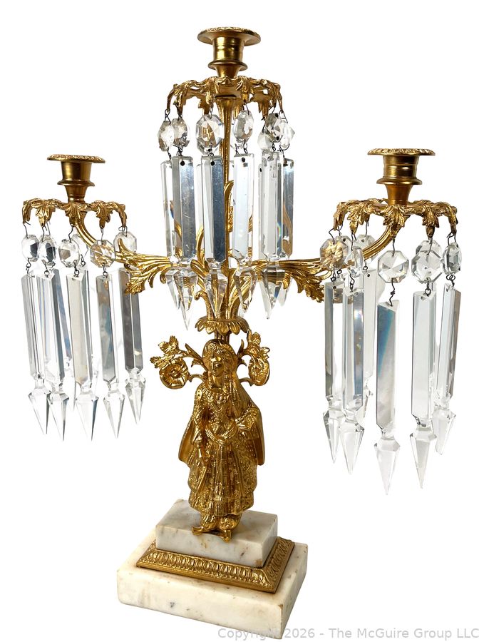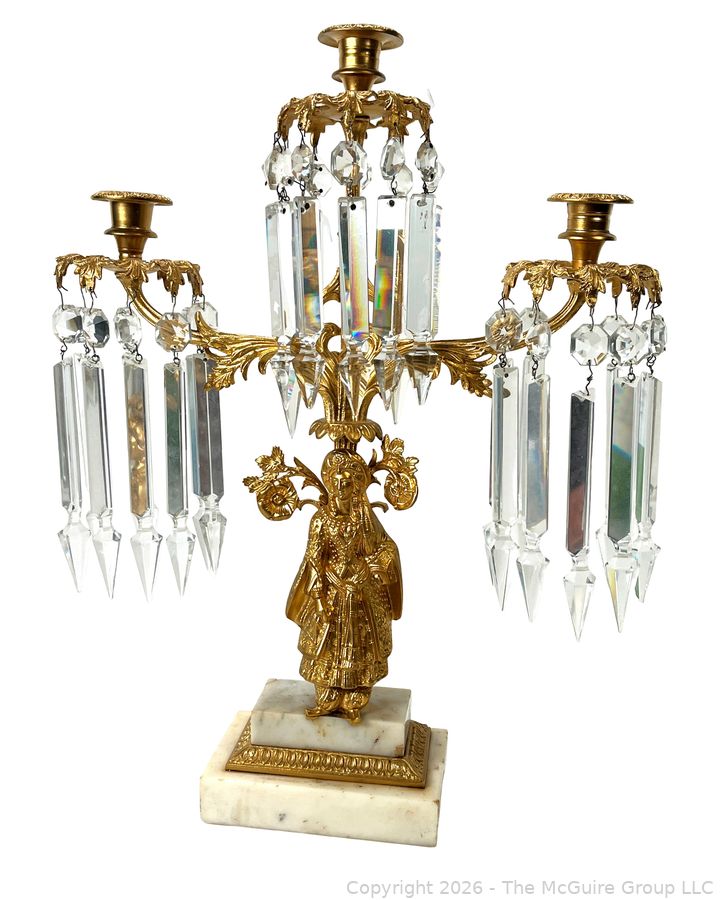 Lot #0050CP: Figural Cast Brass & Marble Three (3) Arm Girandole Candelabra, Circa 1840s