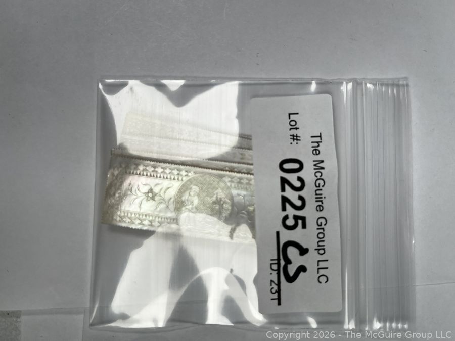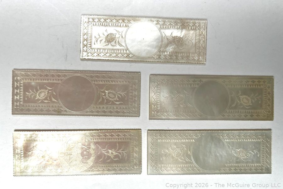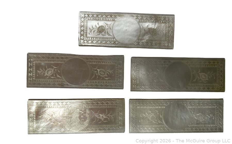 Lot #0225CS: Five (5) 18th Century Engraved Mother of Pearl Gaming Chips