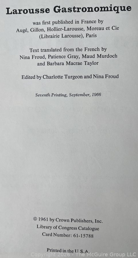 Lot #0308PB: Five (5) Cook Books Including Larousse Gastronomique