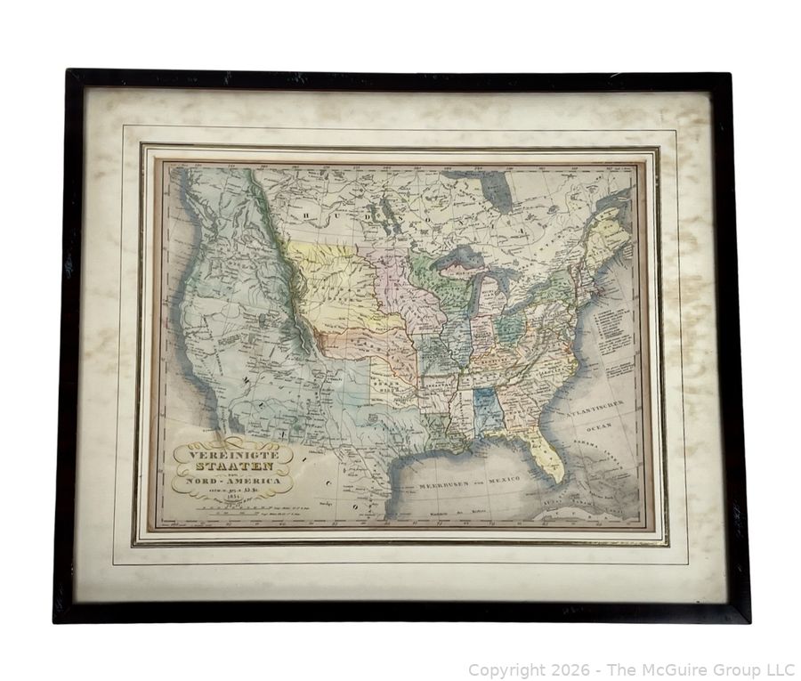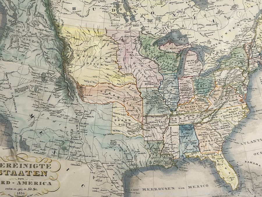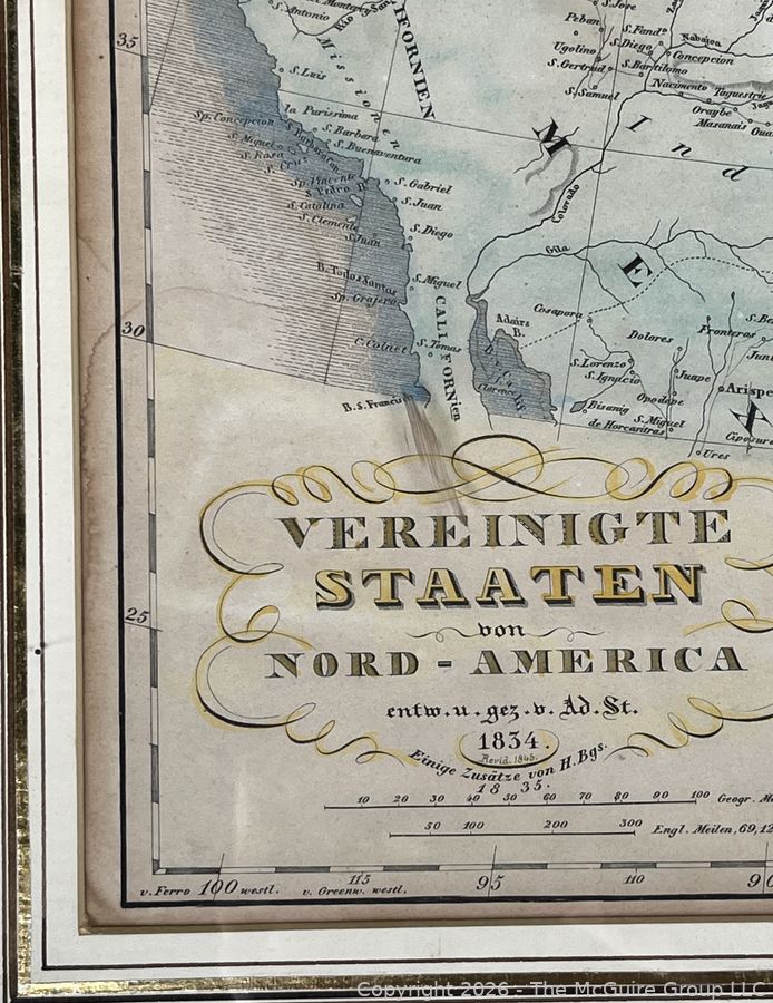 Lot #0109DW: Framed Under Glass 1834 Hand Colored Map of North America, Drawn and Engraved by German Cartographer Adolf Steiler. Includes Areas That Would Become Texas and the American Southwest.