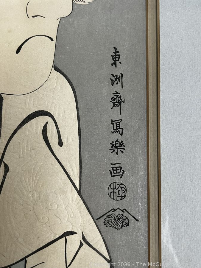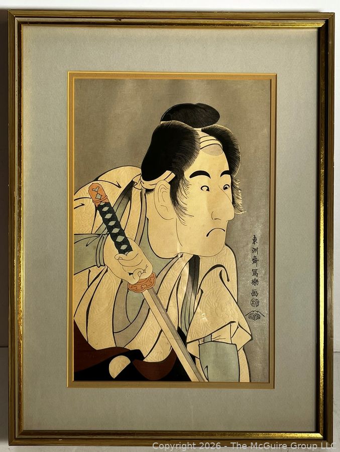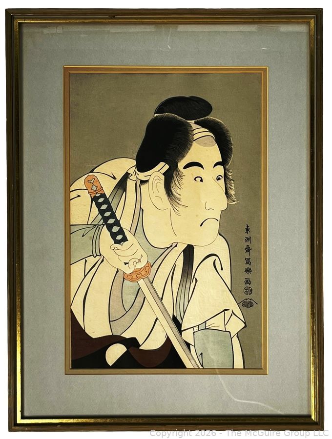 Lot #1004PB: Framed Under Glass Color Woodblock of Bandō Mitsugorō II by Japanese Ukiyo-E Artist Tōshūsai Sharaku. 21" x 16"