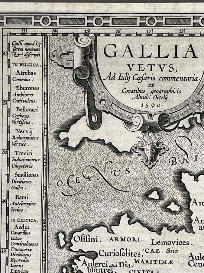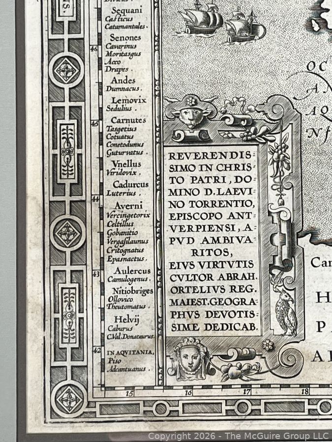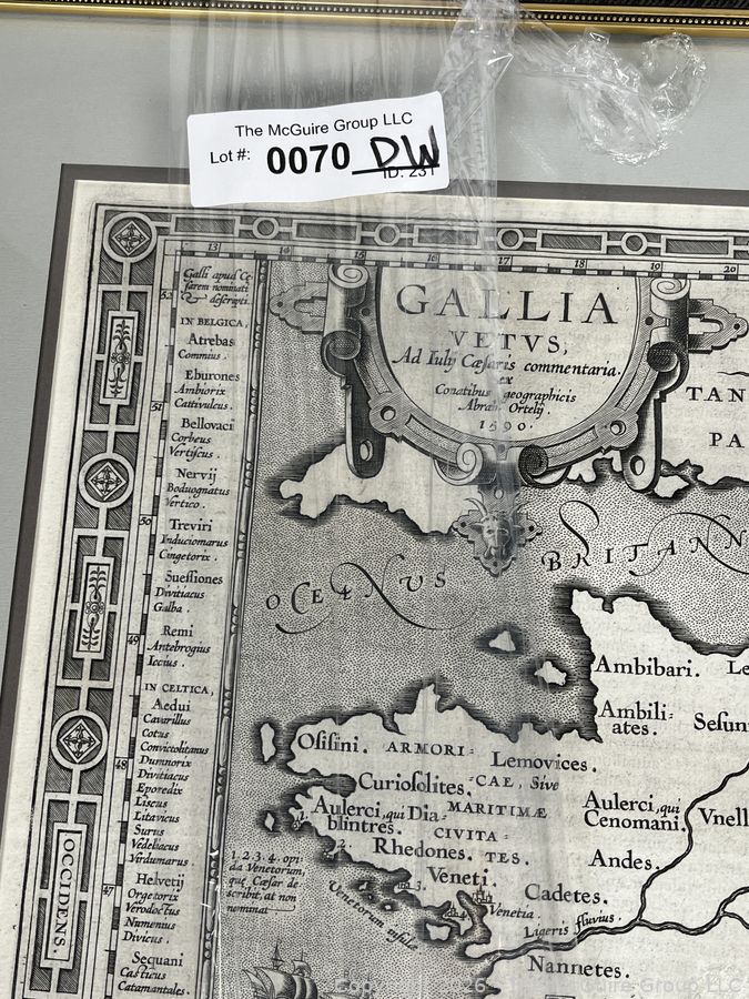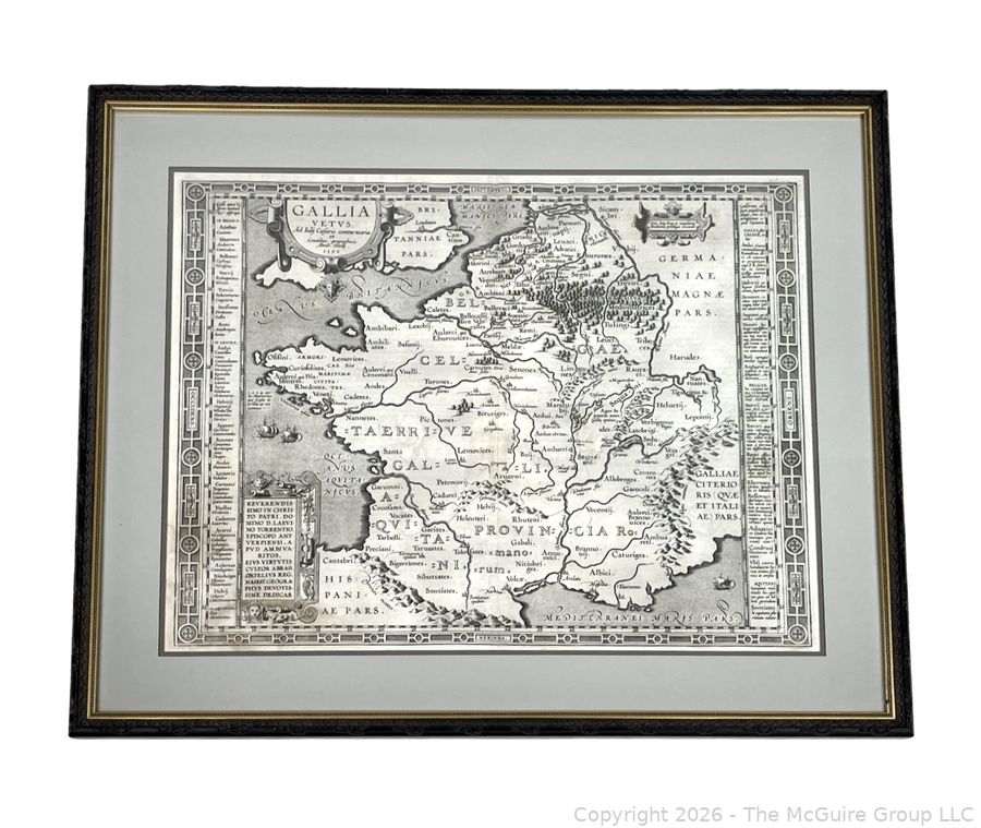 Lot #0070DW: Framed Under Glass Map of Ancient Germany. Based on an Earlier Work of Abraham Ortelius, this Map was Published by the Dutch Cartographer Johannes Janssonius Around 1640.