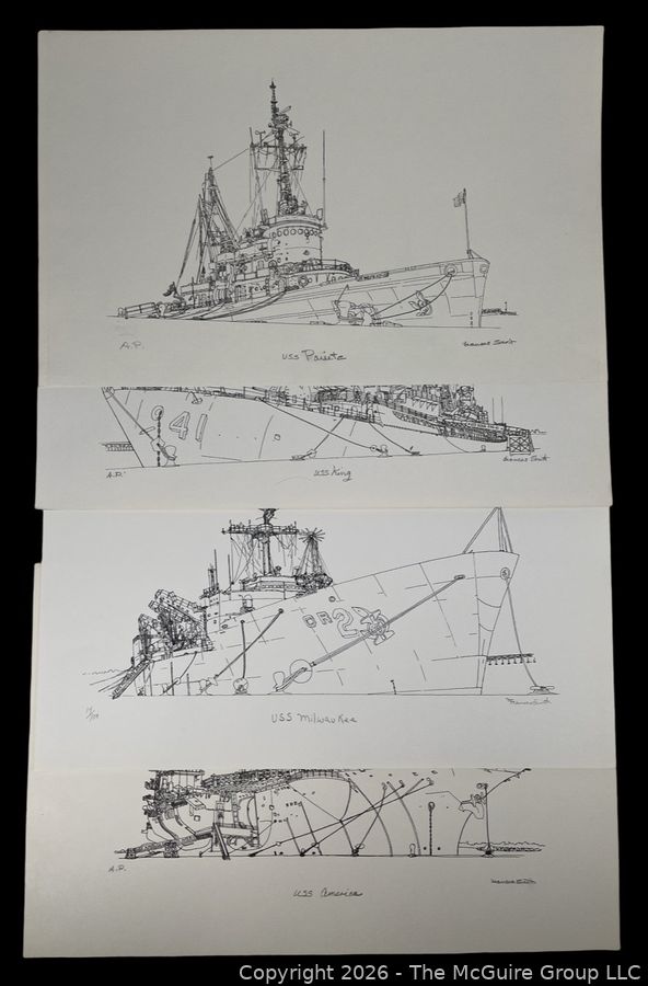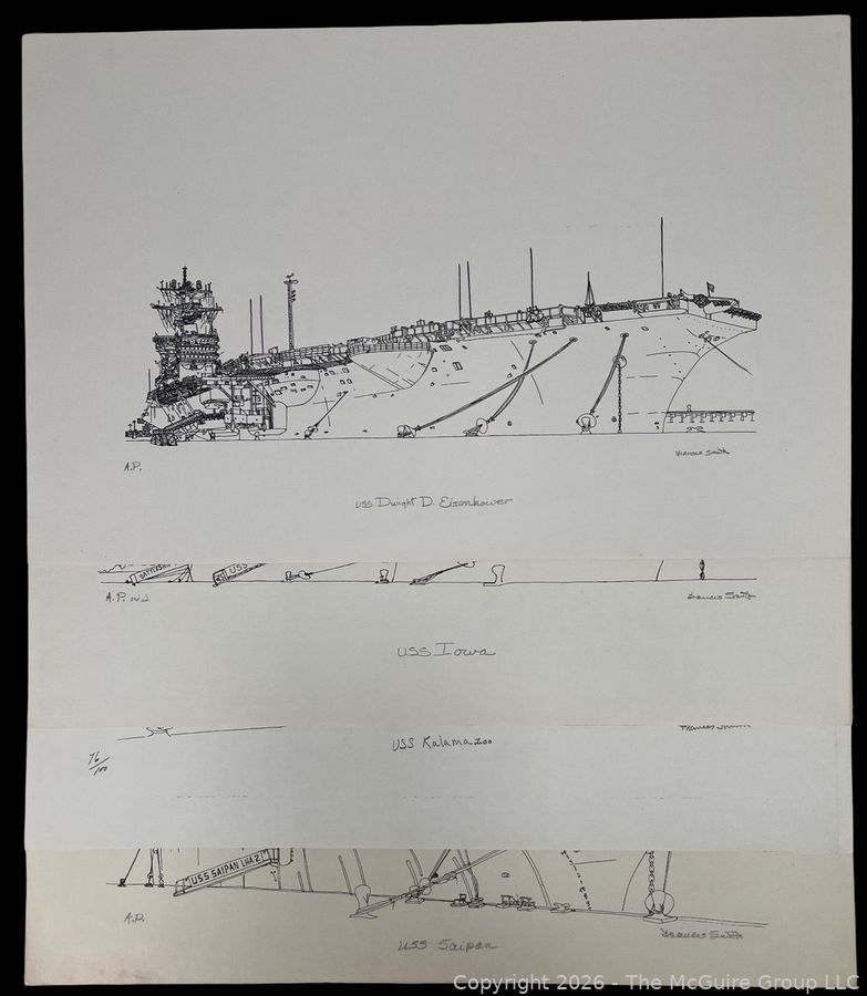 Lot #0164CS: Group of Naval Ship Art Prints Signed and Numbered in Pencil by Artist Frances Smith. 11" X 17".